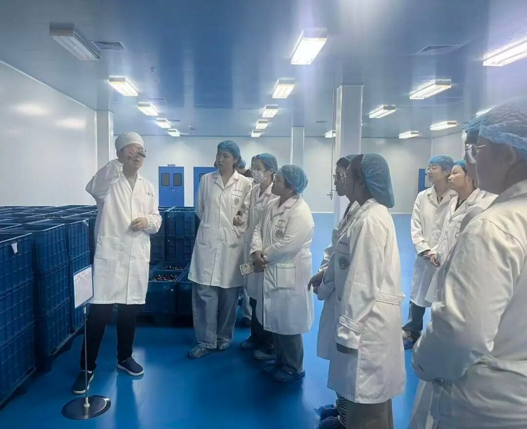 宣讲结束后,同学们在两位老师的指引下,严格遵守企业规定,换上实验服,经过规范的消毒与风淋程序,正式踏入生产车间。整洁有序的生产环境、规范严谨的操作流程,瞬间让同学们感受到了药企生产的专业性与严肃性。