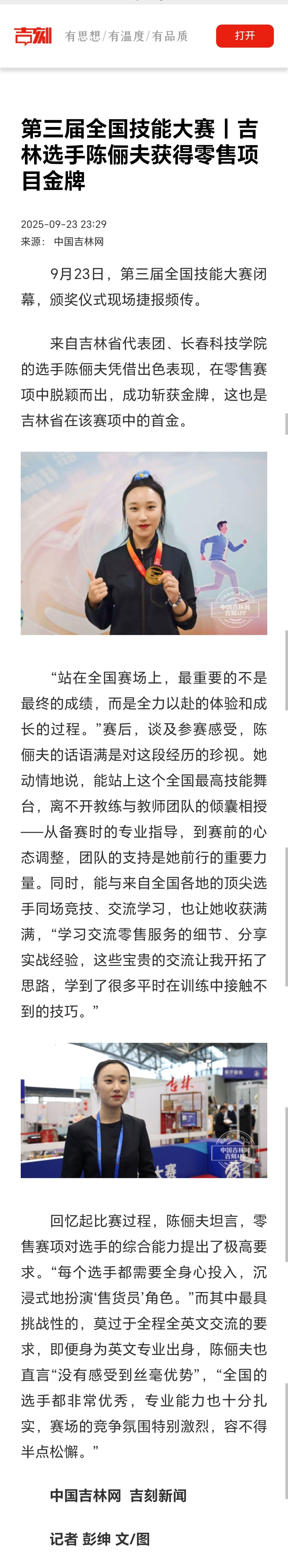 第三届全国技能大赛|吉林选手陈俪夫获得零售项目金牌