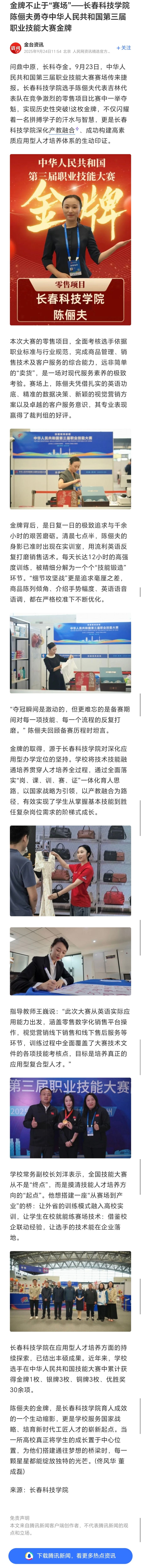 长春科技学院陈俪夫勇夺全国大赛金牌!