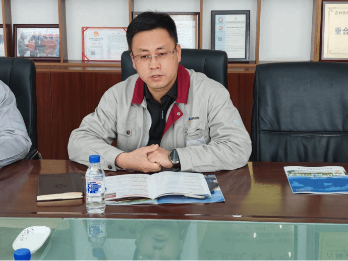 吉林牧神机械有限责任公司总经理王新成发表讲话,对崔高嵩书记一行的到来表示热烈欢迎,认可学校办学特色与人才培养质量,介绍了企业主营领域、发展现状及人才需求情况,并表示期待与学校开展深度合作。企管部主任黄奎、企管部副主任蔡丽娟陪同座谈,就企业用人标准、岗位设置、实习安排等细节作了详细说明。
