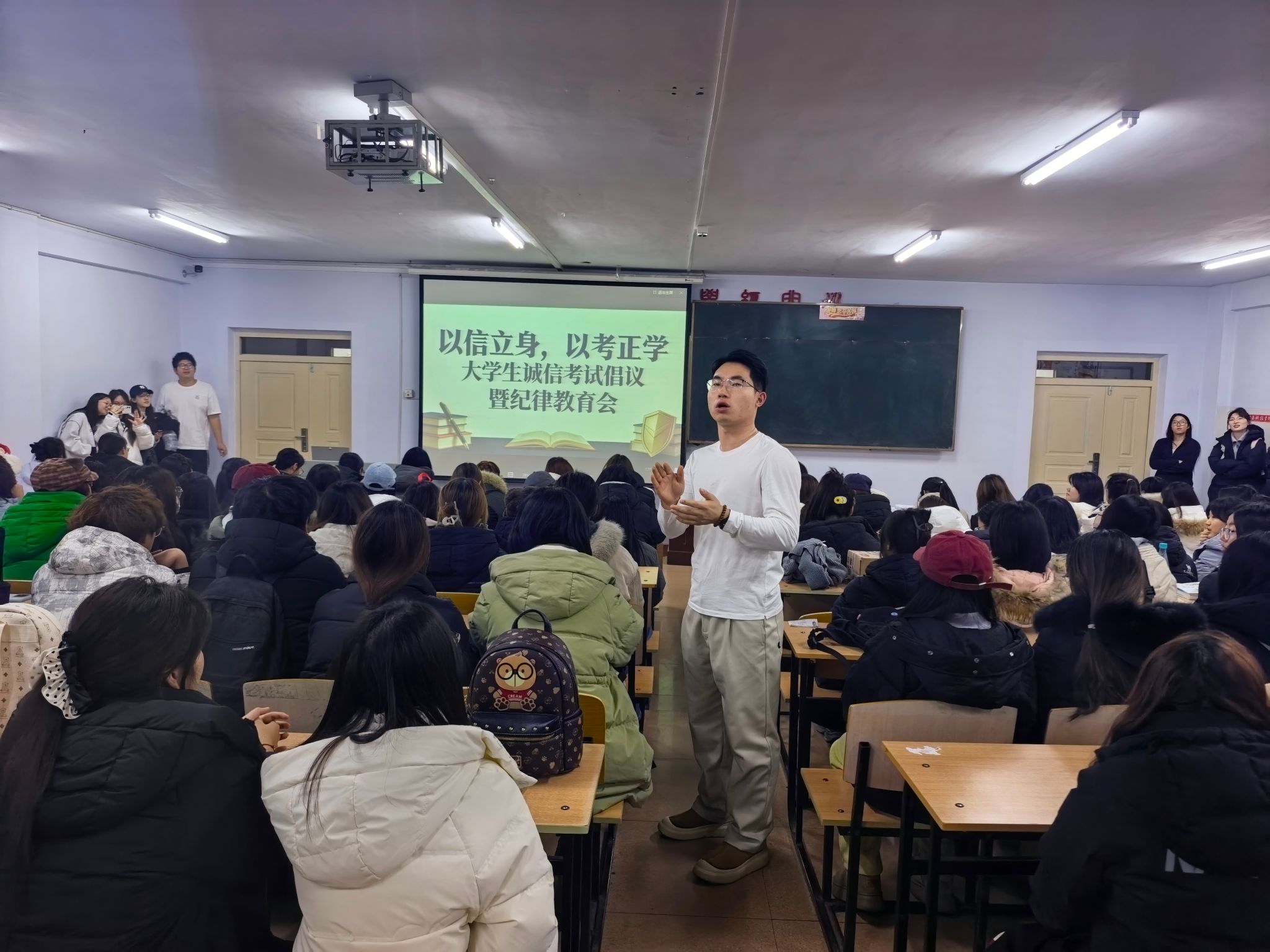 为进一步增强党组织凝聚力和战斗力,强化党员宗旨意识,引导学生党员不断提高政治站位、发挥先进青年模范作用,牢记使命。2024年12月10日,我院学生党支部在二教410开展了“党员先锋行,时代担使命”主题党日活动。学院党总支部副书记武强,党总支宣传委员冯也,学生第一党支部书记韩雪,学生第二党支部书记王琳倩,学工教师党支部宣传委员崔亭亭,学生第一党支部组织委员信晓薇,学生第二党支部...