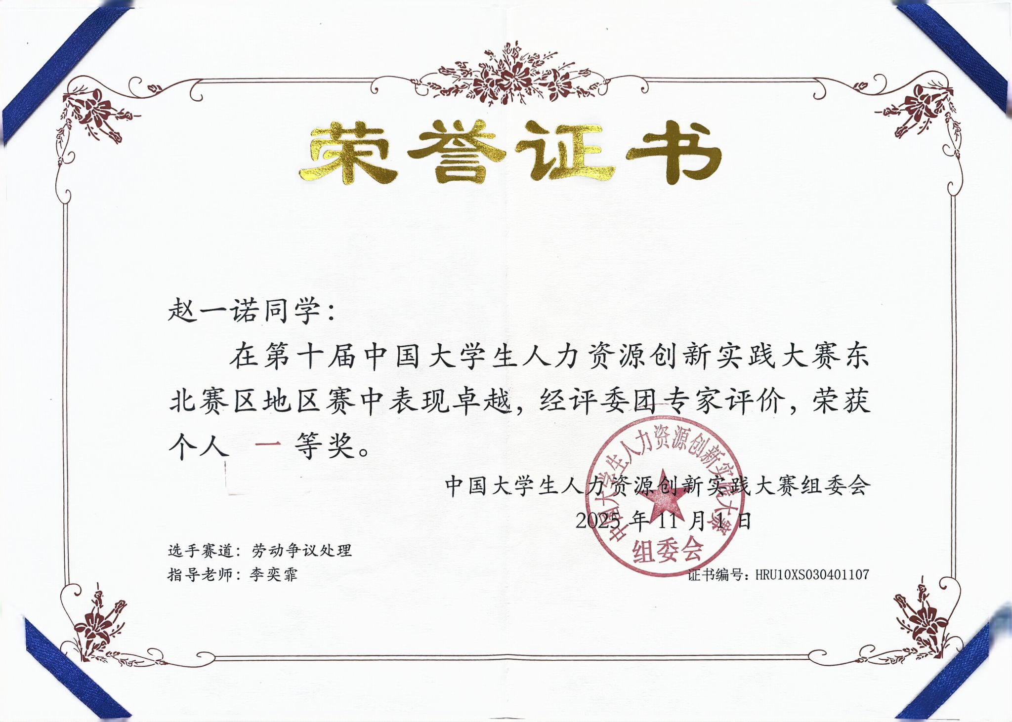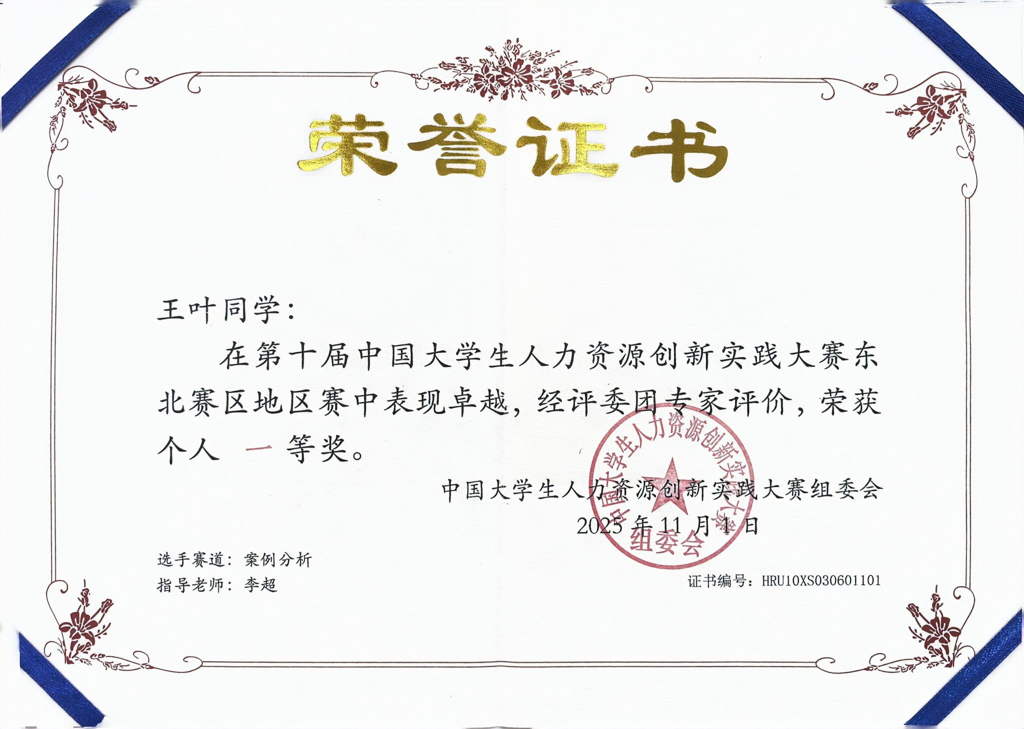 大赛设置案例分析、职场实战、HR+AI实操等六大核心赛项,全面模拟企业人力资源管理真实场景。评委团由上市公司人力资源高管、500强企业人力资源专家及行业资深顾问组成,从创新性、实操性与法律合规性等多维度进行综合评价。经过激烈角逐,我院人力资源管理专业在东北区域赛中荣获团体二等奖,其中案例分析赛道、劳动争议处理赛道获得一等奖。