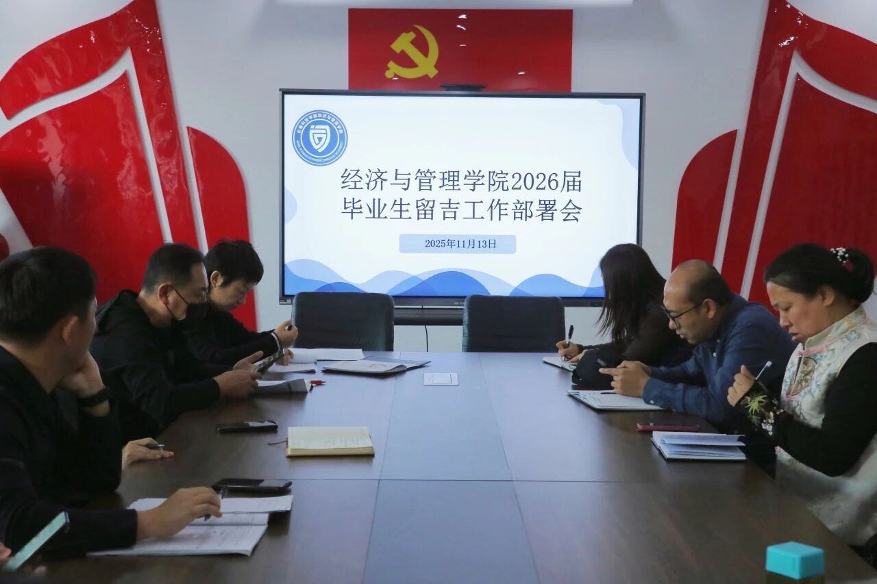 为引导2026届毕业生扎根吉林、服务区域发展,经济与管理学院召开毕业生留吉工作部署会,经济与管理学院院长赵立夫、科研副院长成颖、教学副院长李尚越、党总支副书记武强、分团委书记冯也、学工办主任刘嘉南、各专业主任和毕业班辅导员出席会议。会议聚焦吉林省“人才留吉”战略部署,全面落实全省高校毕业生就业创业工作要求,系统部署2026届毕业生留吉就业各项工作。