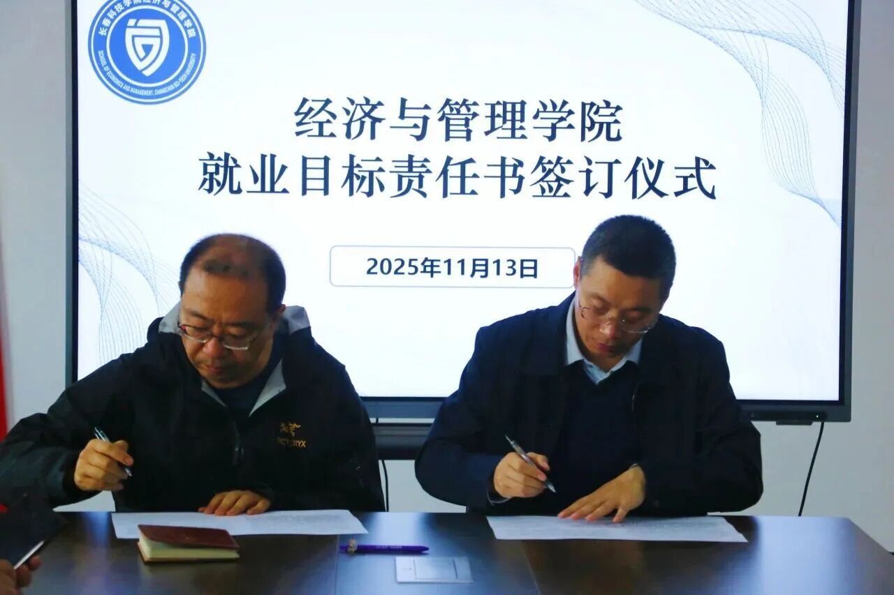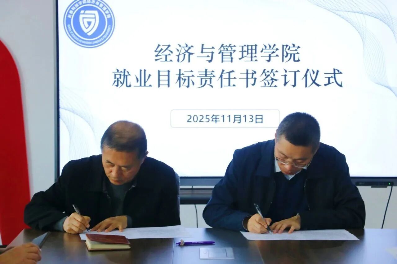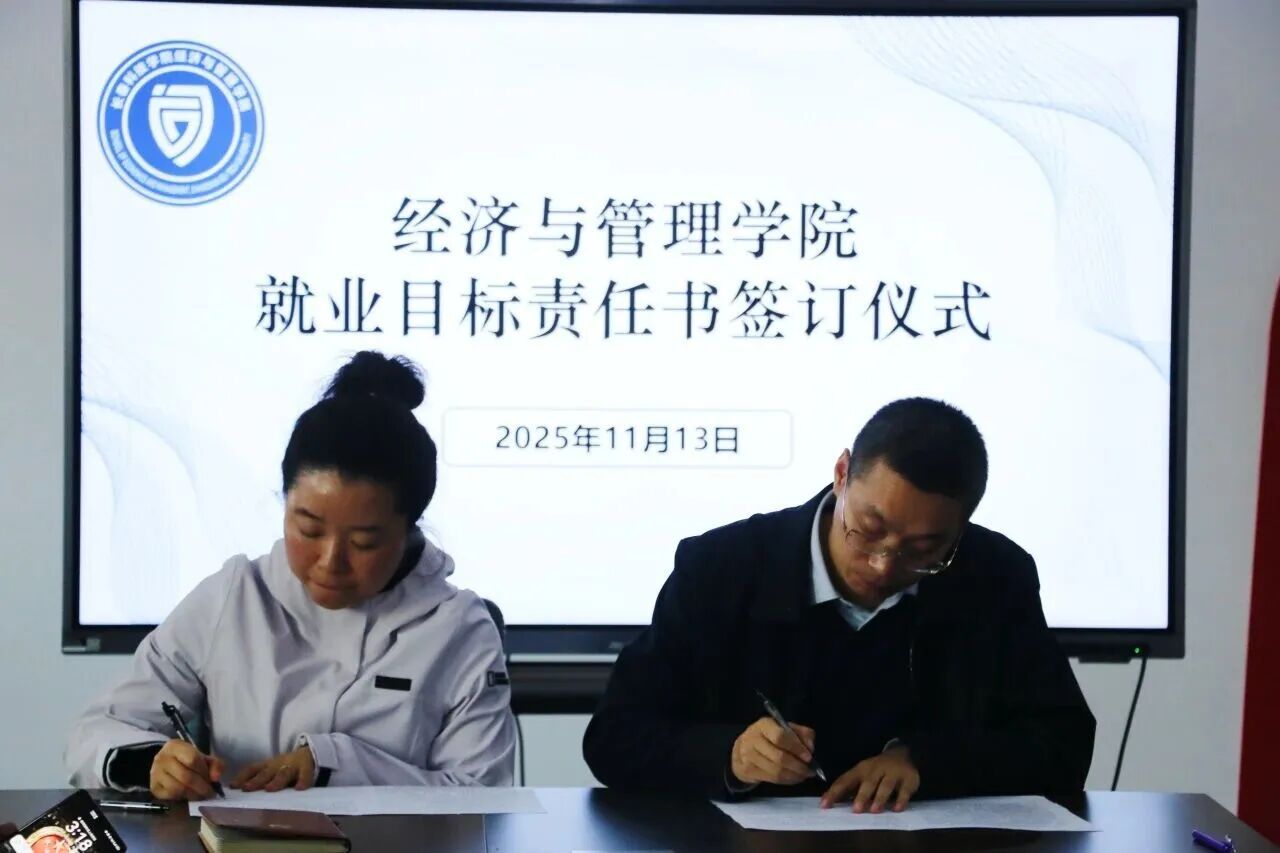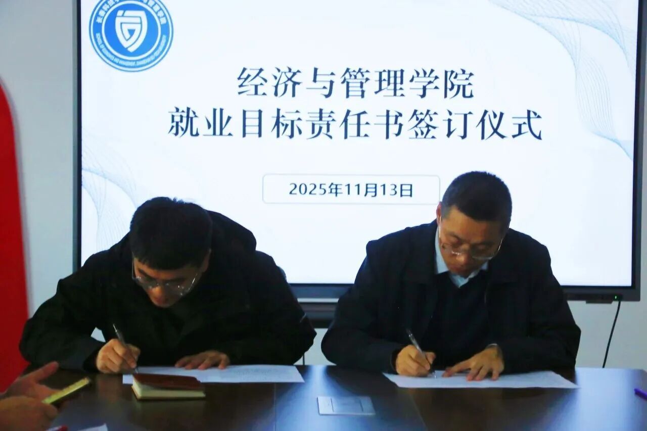 为贯彻落实就业优先战略,压实就业工作责任,推动学院就业工作实现提质增效,经济与管理学院举办了就业目标责任书签订仪式。学院院长赵立夫逐个与各专业主任签订就业目标责任书。明确了年度就业目标、核心任务以及考核标准,这些标准涵盖了就业率、就业质量、服务成效等关键指标,构建起“院长统筹、主任主抓、全员协同”的工作格局。各专业主任表态,会细化工作举措、拓展校企合作、拓宽就业渠道,全力以赴完成既定目标。此次签约是经济与管理学院压实责任、凝聚合力的一项重要举措。未来,经济与管理学院将以责任书为着力点,深化就业育人改革,提升人才培养与服务质量,助力毕业生实现就业价值,为区域经济社会发展输送高素质的经管人才。