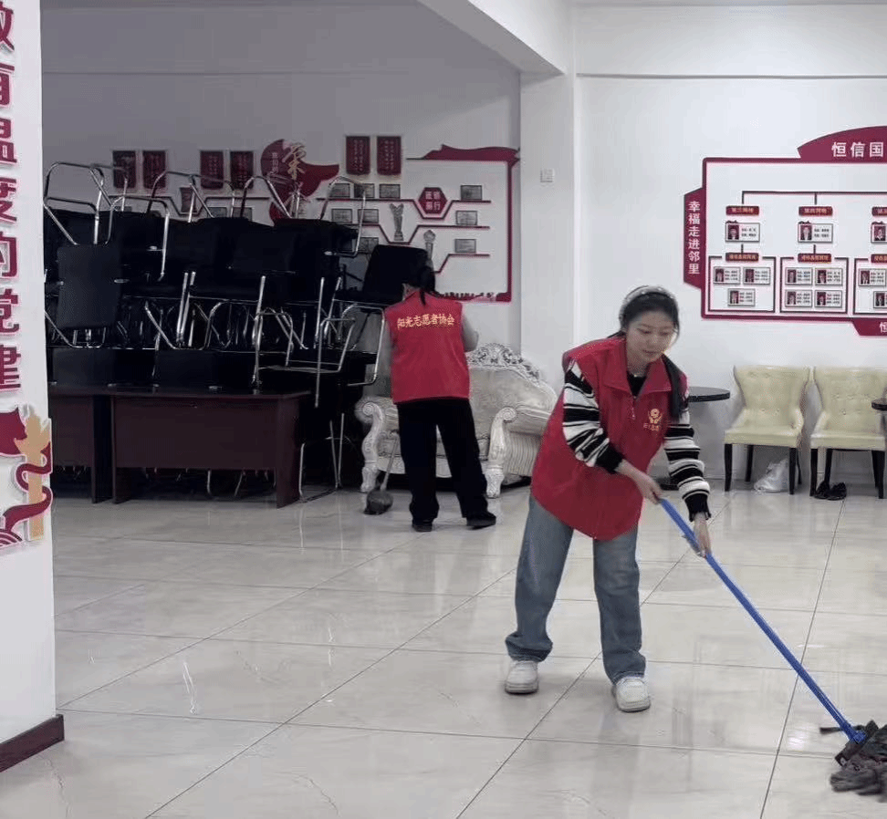 作为阳光志愿者协会的一员,25级财务管理1班的郑惜文始终坚信公益是连接爱心与温暖的桥梁,而社区作为社会治理的基本单元,更是公益服务的重要阵地。为响应“共建和谐社区、传递志愿温情”的号召,助力社区党群服务阵地建设,关爱老年群体生活需求,阳光志愿者协会于2026年1月20日组织开展了以“清洁党群空间,成为责任一员”为主题的公益实践活动。