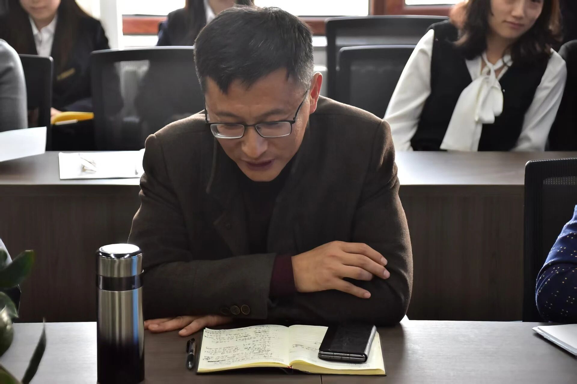 会议第一项,武强副书记详细说明2025年度考核工作的重要意义,并宣读年度考核相关通知文件,明确考核标准、工作流程与纪律要求,强调本次述职大会是复盘工作、检视成效、凝聚共识、谋划未来的重要载体,对学院管理提质、队伍建设具有关键作用。