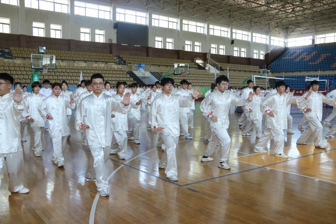 伴随着悠扬舒缓的音乐,我院学子身着统一服装,缓缓起势。双手徐徐抬起,如行云流水般自然流畅。野马分鬃动作整齐划一,白鹤亮翅飘逸舒展,每一个招式都精准到位。队员们目光专注,呼吸与动作和谐统一,将太极拳的柔美与刚健完美融合。