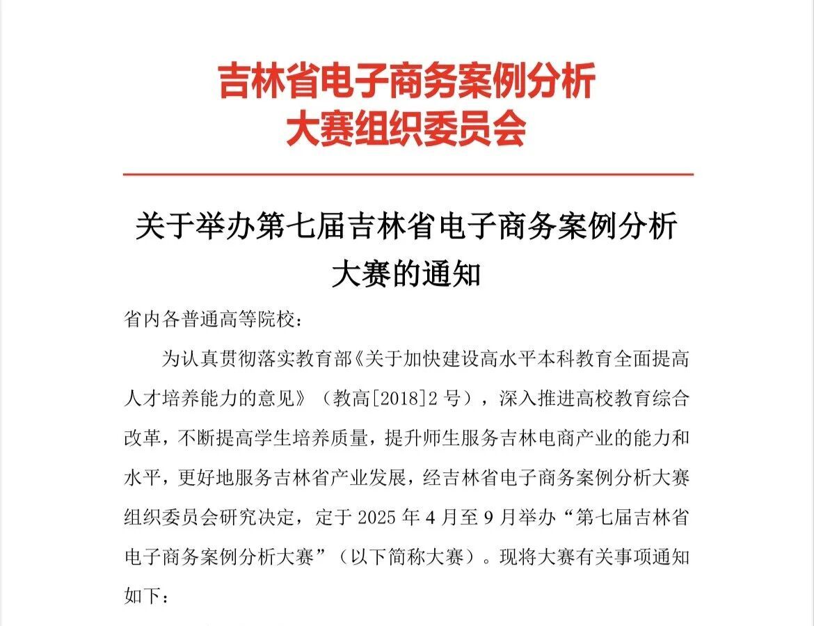 吉林省电子商务案例分析大赛是列入吉林省教育厅普通高等学校大学生学科竞赛名单的重要赛事。大赛旨在创建高校、院所、行业与企业协同创新的平台,通过对经典案例、典型企业的分析与讨论,提升学生的综合分析与决策能力,培养亟须的“专业基础知识雄厚、分析决策能力过硬、创新思维意识较强”的现代电子商务行业创新型人才。自大赛启动以来,得到了吉林省教育厅和相关高校的高度重视,参与面广泛,参与人数众多,已经成为省内学科竞赛中影响较大的赛事之一。