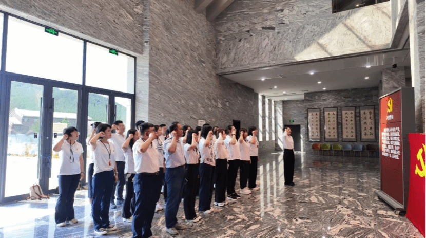 活动首站来到九台区红色教育基地内的三下江南战役纪念馆。全体党员首先面向党旗庄严宣誓,重温入党誓词。
