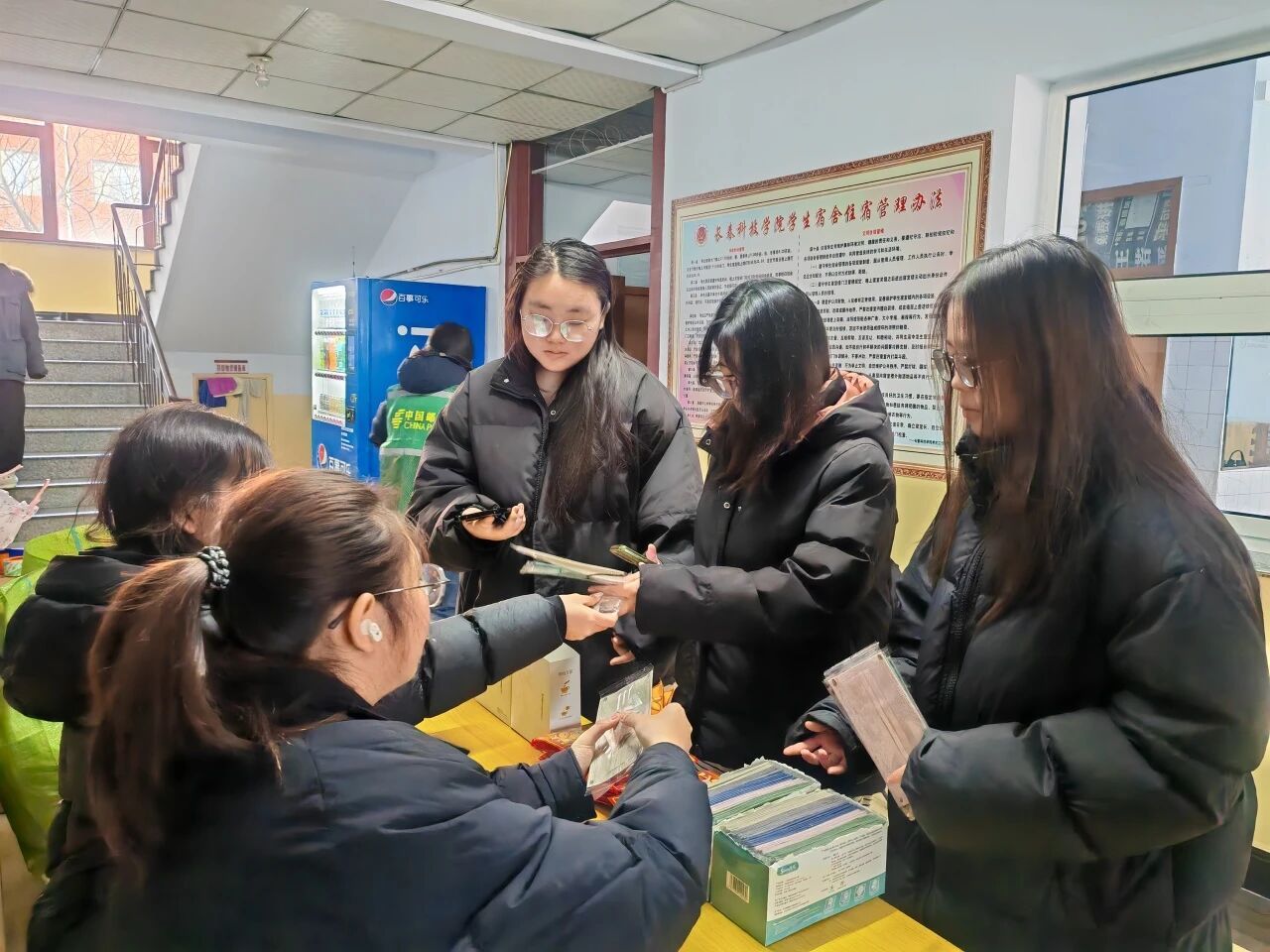 志愿者们精心筹备了暖心好物与御寒佳品,于凛冽冬日里为同学们驱散寒意、慰藉心田,以实际行动传递青春温情与同窗关爱。