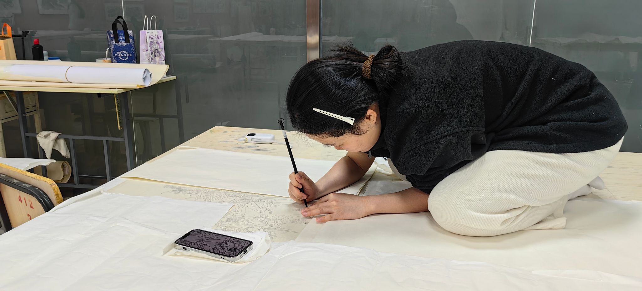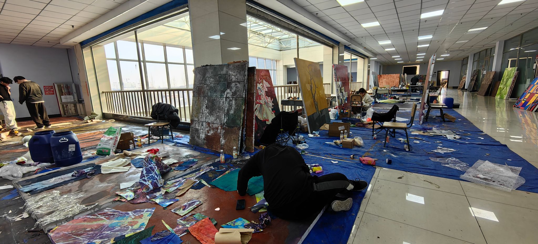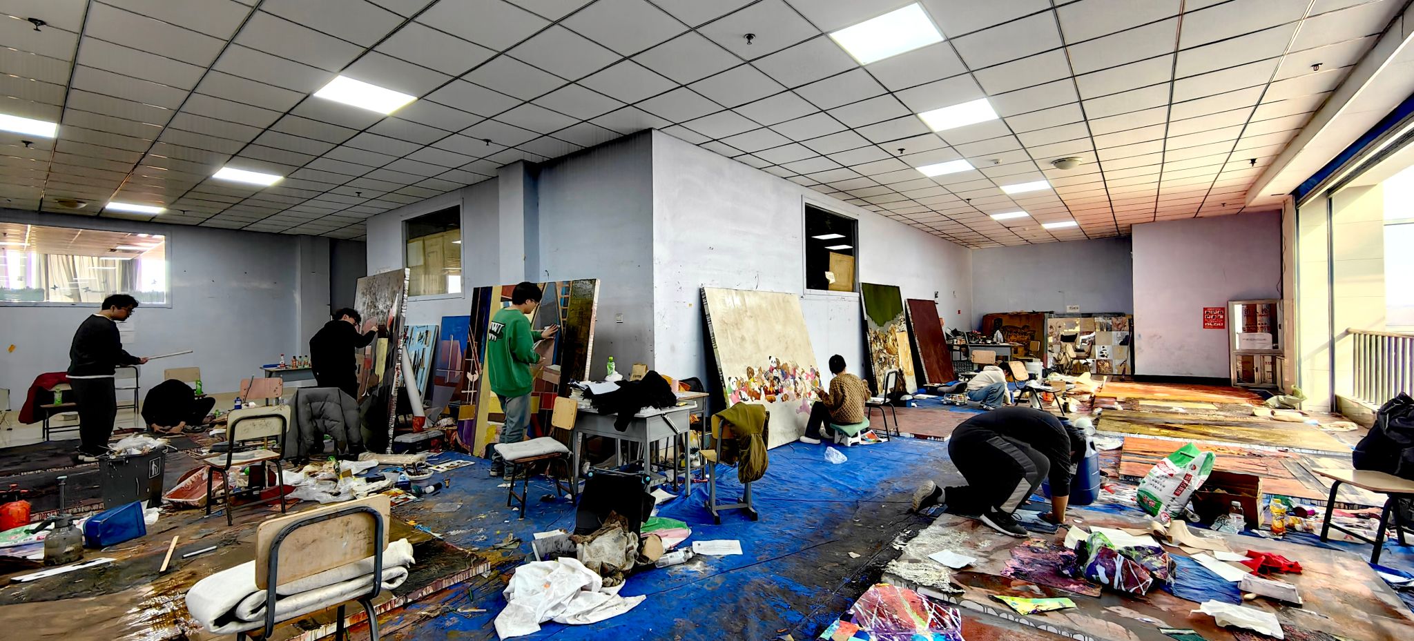 宋学智教授结合现场观摩的学生综合材料作品,从专业角度细致点评了其中空间构成,材料语言运用的亮点与可深化之处。曲鸽教授则从学生创作的表现形式出发,对学生作品中的形式探索与观念表达给予指导,并鼓励大家保持住对创作的热情和探索的勇气。
