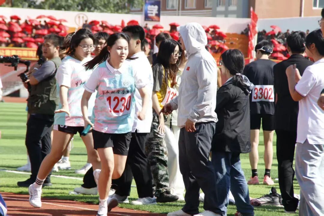 跑道上,他们或许没有学生们的疾如闪电,却始终保持着稳健的步伐,每一步都透着“不放弃”的韧劲,引得场边学生自发组成“加油团”,呐喊声此起彼伏;往日里的“师长”此刻变成了并肩作战的“队友”,轻松氛围感染着在场每一个人