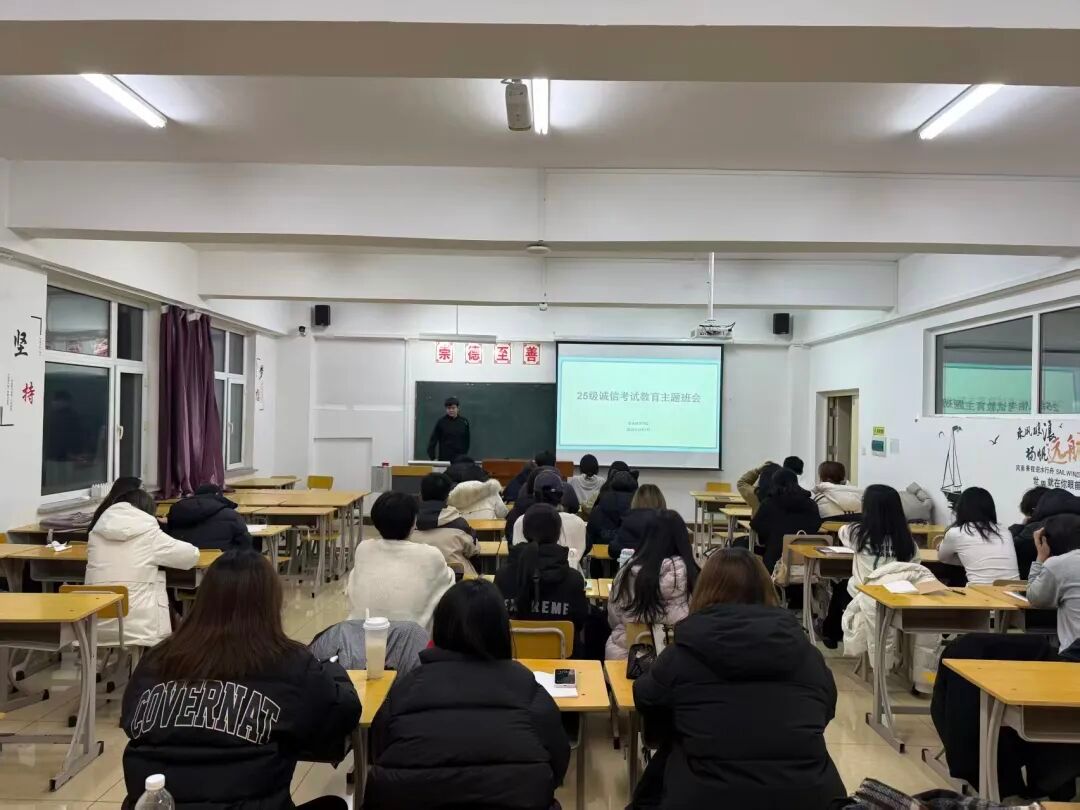 在诚信应考教育环节,各年级辅导员立足学科特色与学生实际,开展了针对性极强的教育引导。辅导员们开宗明义,强调考场上的诚信作答不仅是对知识掌握程度的检验,更是对个人品格的锤炼。为让纪律意识入脑入心,辅导员们还系统解读了《学生手册》中关于考试违纪的处分规定,结合以往考试中存在的作弊行为典型案例,深入剖析了作弊行为对个人的评奖评优、入团入党乃至人生发展的严重危害,告诫学生不要存在侥幸心理。针对考研学生,22级毕业班辅导员重点强化了全国硕士研究生招生考试的诚信纪律教育,详细解读了研考相关违规违纪处理办法,明确指出研考作为国家级重要考试,作弊行为将面临更为严厉的处罚,不仅会取消考试成绩、记入国家教育考试诚信档案,还会对未来升学、就业产生深远负面影响。同时提醒考研学生提前熟悉研考考场规则,做好考前准备,以真实实力从容应考,守住诚信底线。