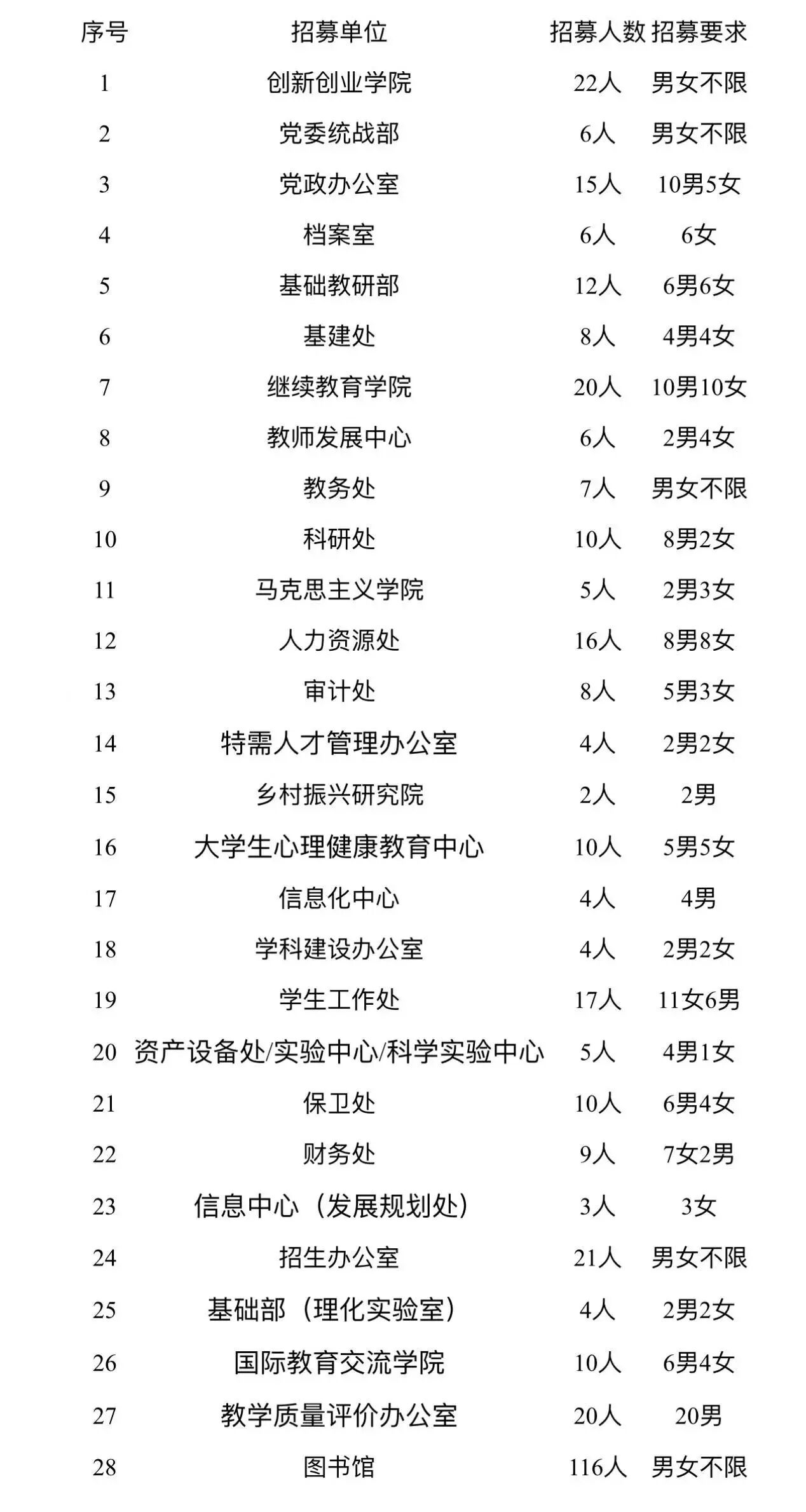 岗位及招募条件一览表
