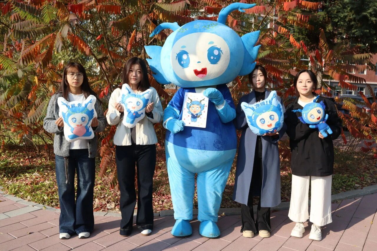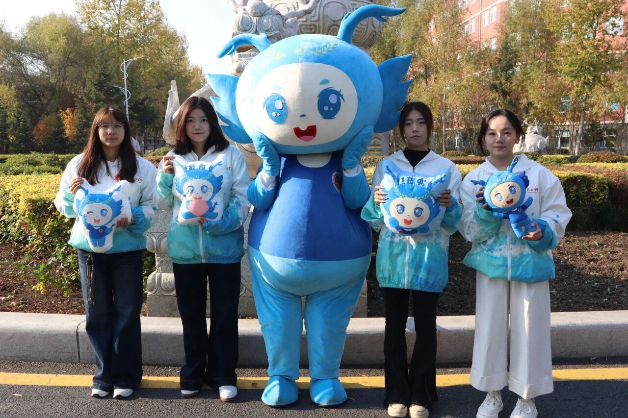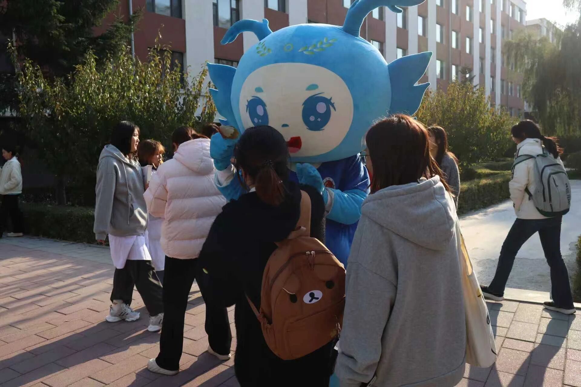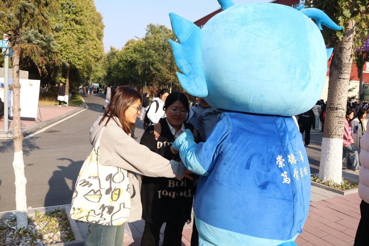镜头下,“鳌宝”人偶活力四射,与同学们热情互动,将校园秋景的诗意与文化IP完美融合,每一帧画面都是校园文化的鲜活注脚。