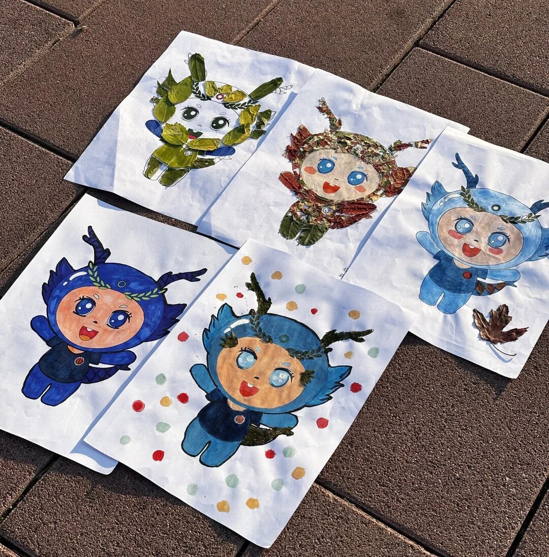 不少同学领取了“鳌宝”线稿,以自主收集的落叶进行创意填色,每一幅作品都是秋与艺术的对话,更是环保理念的生动实践。