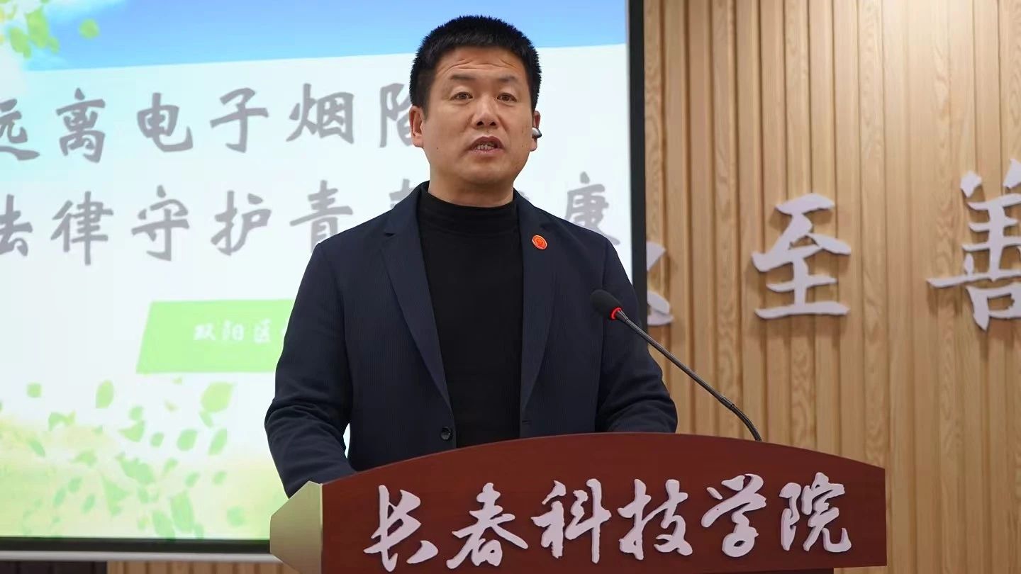 为切实守护大学生身心健康,筑牢校园“无烟”防线,12月9日下午,我校特邀请到长春市双阳区烟草专卖局稽查管理办公室二所所长刘畅,在行政楼411会议室做以《远离电子烟陷阱,用法律守护青春健康》为主题的宣讲。本次活动由学生处学生管理科科长张文主持。长春市双阳区烟草专卖局局长徐轶群、长春市双阳区烟草专卖局副局长敬勇、长春市双阳区烟草专卖局管理办公室主任李瀛莅临现场指导,全校辅导员老师共同参与此次宣讲活动。