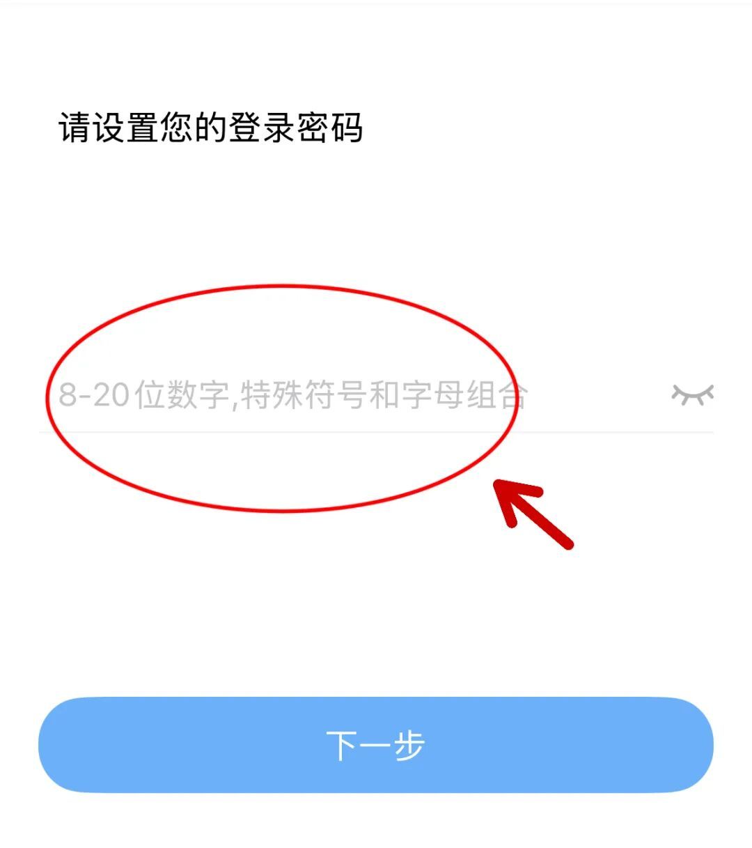 点击注册,设置密码,点击【下一步】进入完善资料页面。