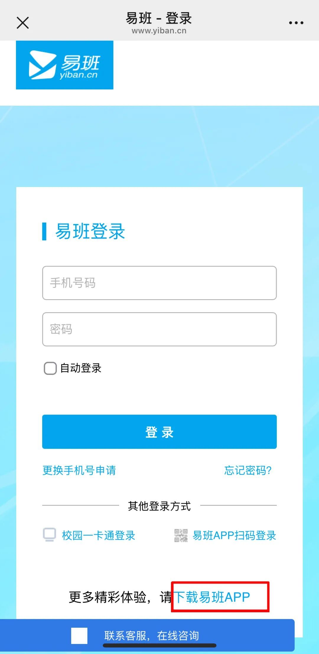 方法二:通过手机系统中的应用中心或APP Store软件,搜索“易班”,点击“安装”,安装完毕后打开易班软件。