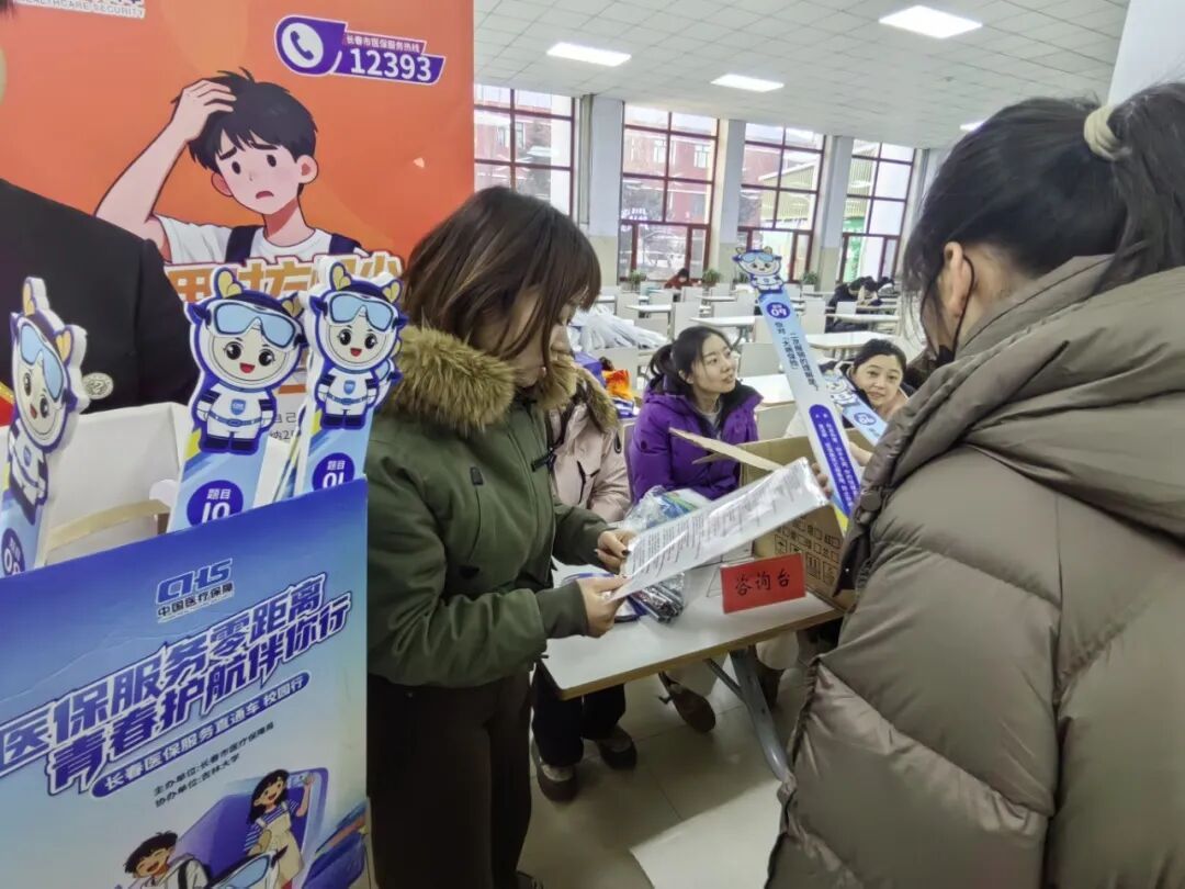 为扎实推进2026年度我校大学生城乡居民基本医疗保险参保缴费工作,切实提升在校大学生医保政策知晓率与参保率,12月9日下午,我校联合长春市医疗保障局在食堂一楼成功举办“医保服务直通车校园行”主题活动,将医保政策、健康服务与参保便利直接送到学生身边。
