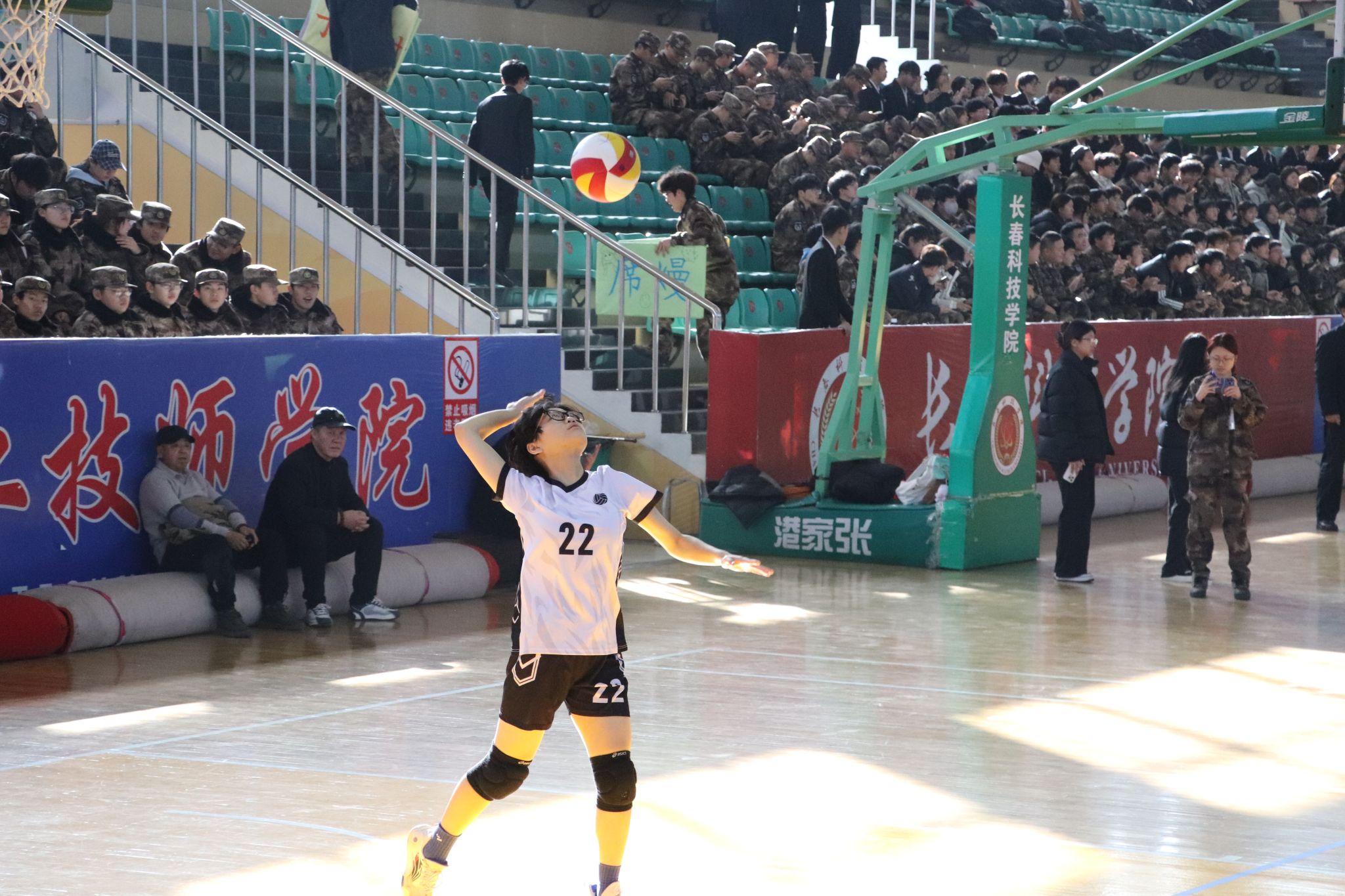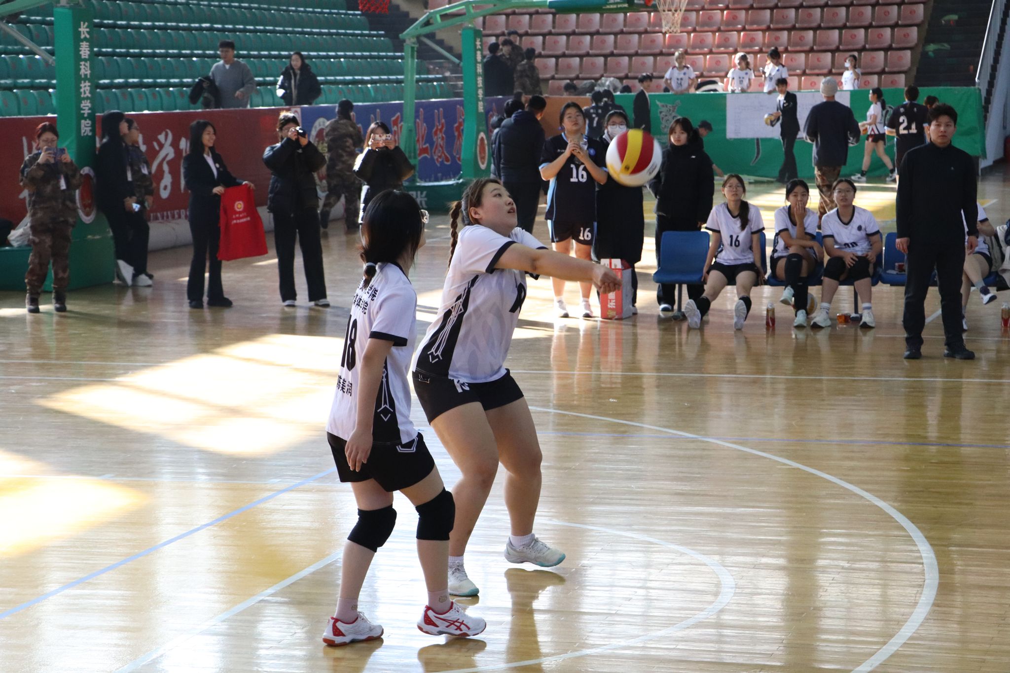 2025年11月20日中午,我院迎来长春科技学院第二十届“东华杯”女子排球赛第三场较量。网前争锋,势不可挡。