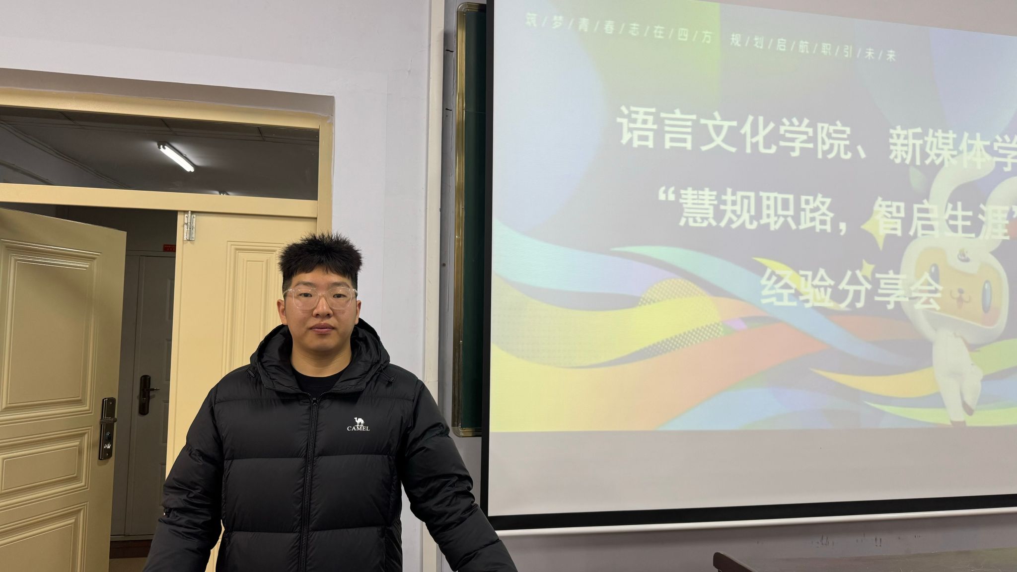 本次分享会由2023级小学教育专业3班的左宝程同学担任主讲。他结合自己参与大赛的实战经验,围绕备赛全流程展开系统讲解。从前期的职业定位与赛道选择,到中期的规划书框架搭建与内容撰写,再到后期的路演逻辑梳理、答辩仪态与应答技巧锤炼,左宝程以具体案例为依托,逐步拆解各环节要点,为在场同学提供了清晰实用的备赛指引。整场分享会内容详实、氛围专注,同学们认真聆听、积极互动,在交流中进一步理清了备赛思路、增强了参赛信心。