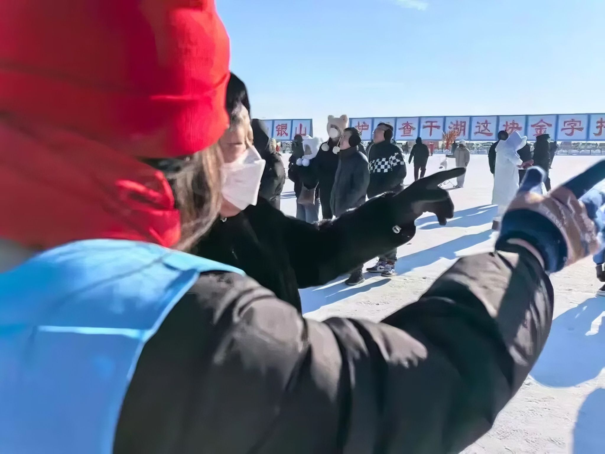 在本次实践中,我作为志愿服务岗的一员,服务于查干湖第24届冰雪渔猎文化旅游节,主要负责游客引导、秩序维护以及非遗文化体验活动协助等工作。严寒之中坚守岗位,让我真切体会到基层服务的责任与担当,每一次耐心解答、每一次有序引导,都是在为游客的安心游览保驾护航。