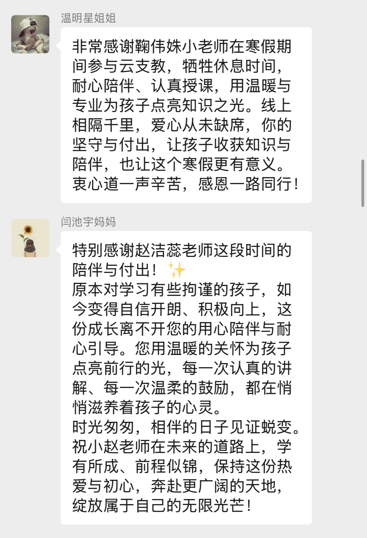 本次活动得到了家长与学员的一致认可和好评。家长们表示,孩子在活动中度过了充实而有意义的假期,各方面都有明显进步,由衷感谢志愿者的悉心教导与无私付出。孩子们也用稚嫩的文字和真诚的话语表达对志愿者老师的感谢,一句句“老师辛苦了”成为云端之上最温暖的印记。