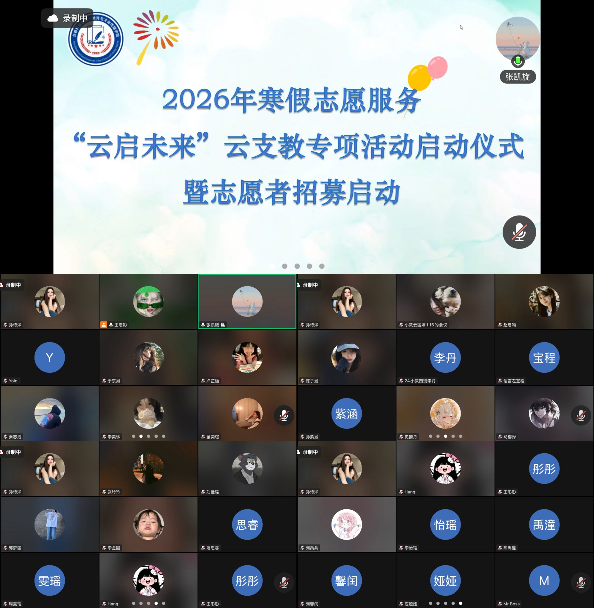 为持续推进“云启未来”大学生社会实践与志愿服务活动,我院蒲公英筑梦公益团于2026年寒假开展云支教专项活动。活动以线上模式为主,以“一对一”精准帮扶为核心形式,围绕文化辅导、阅读分享、云运动打卡等内容开展服务,聚焦青少年假期学习成长与综合素养提升,用心用情做好各项支教工作,现已圆满落幕。
