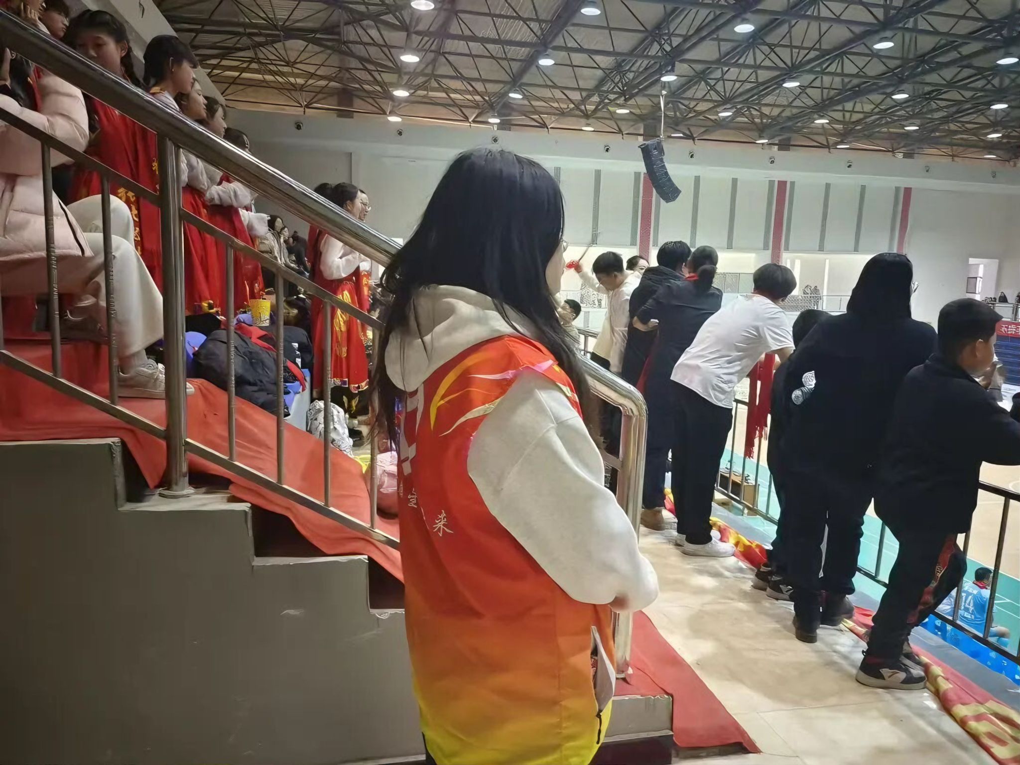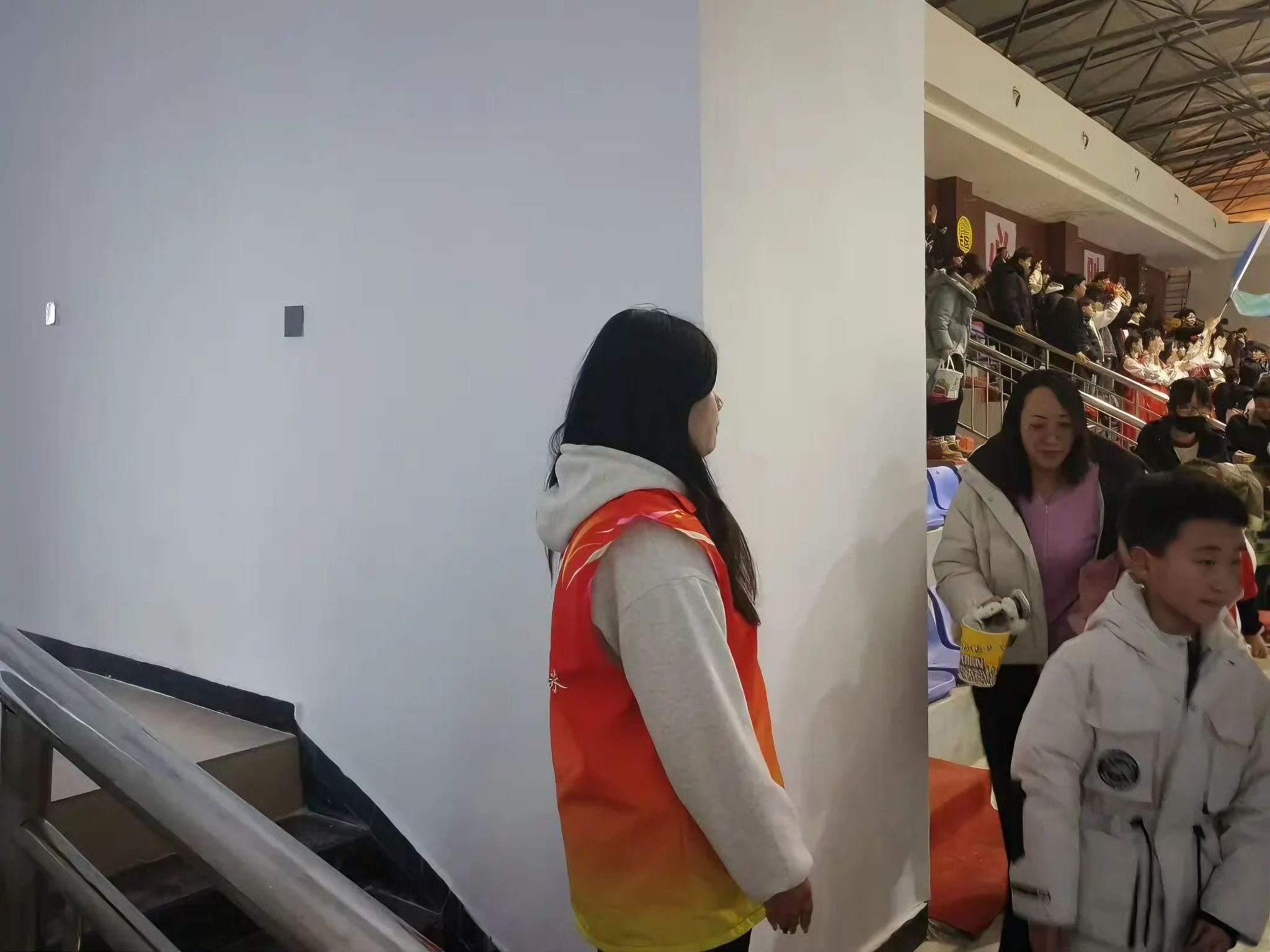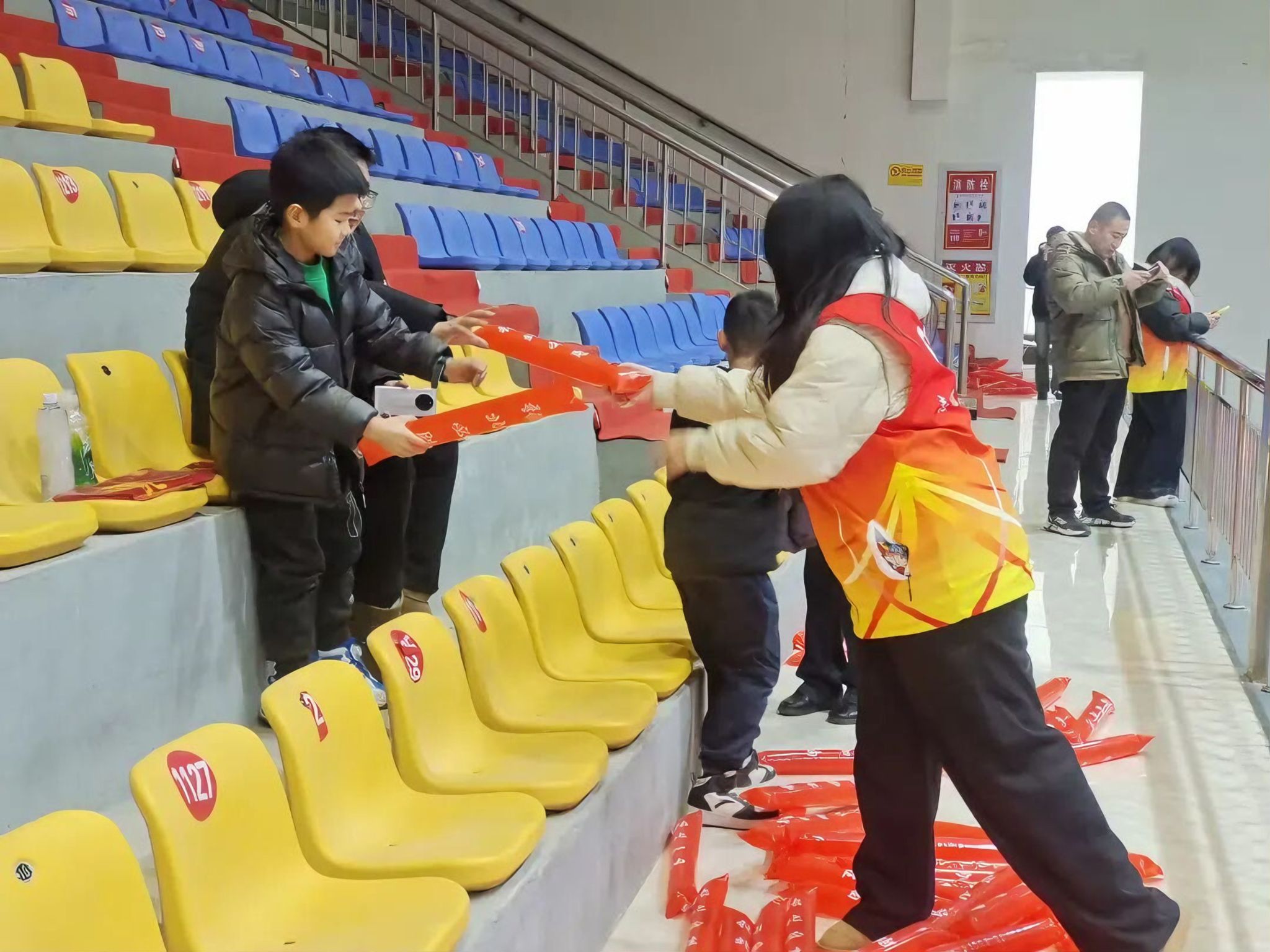 我在成龙大厦三楼体育馆负责观众入场、门票核销与退场全流程工作。赛前提前到岗核对门票信息、分发联赛围巾,引导D、E、F区观众有序入座,提醒家长注意安全并发放应援棒;比赛中维护现场秩序,提醒观众安全观赛、不遮挡视线;赛后引导观众离场,回收整理应援棒、围巾等物资,确保场地整洁。