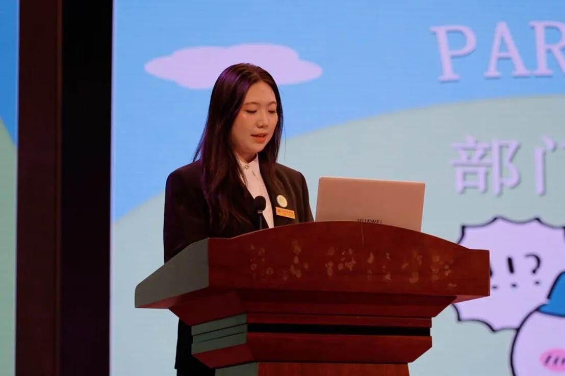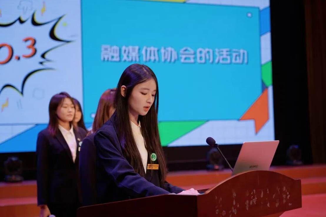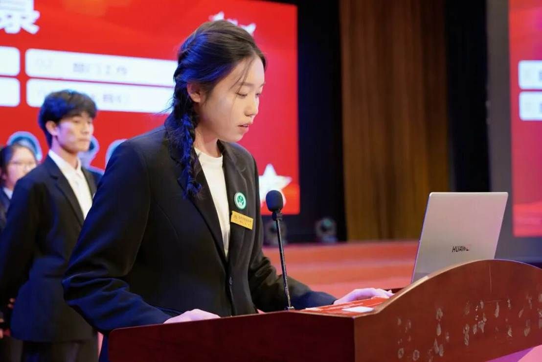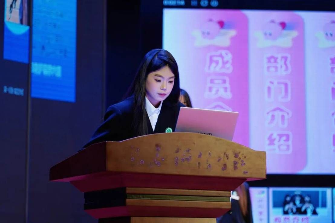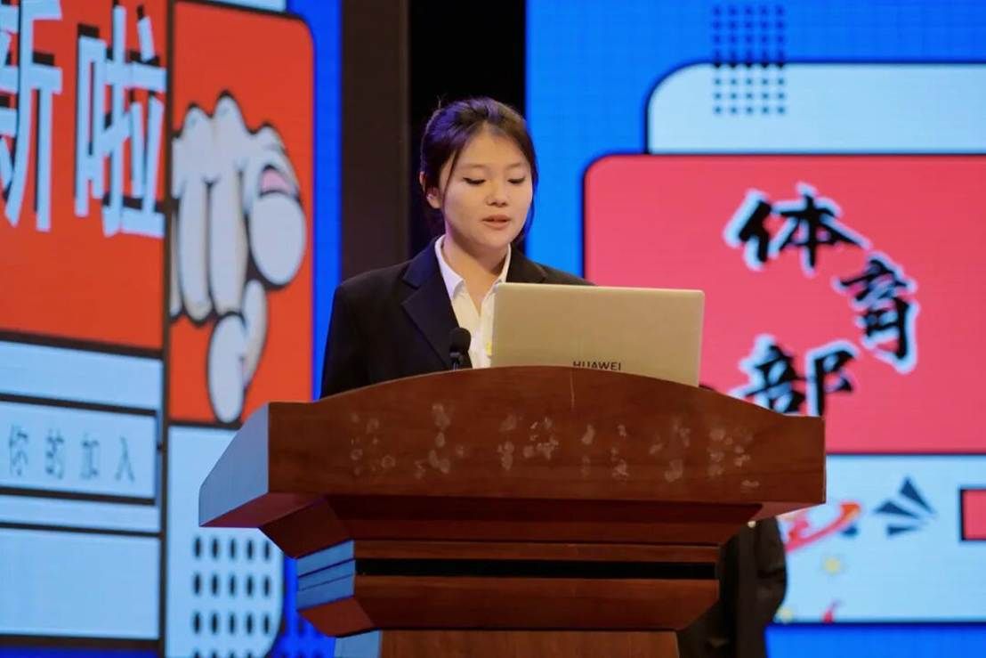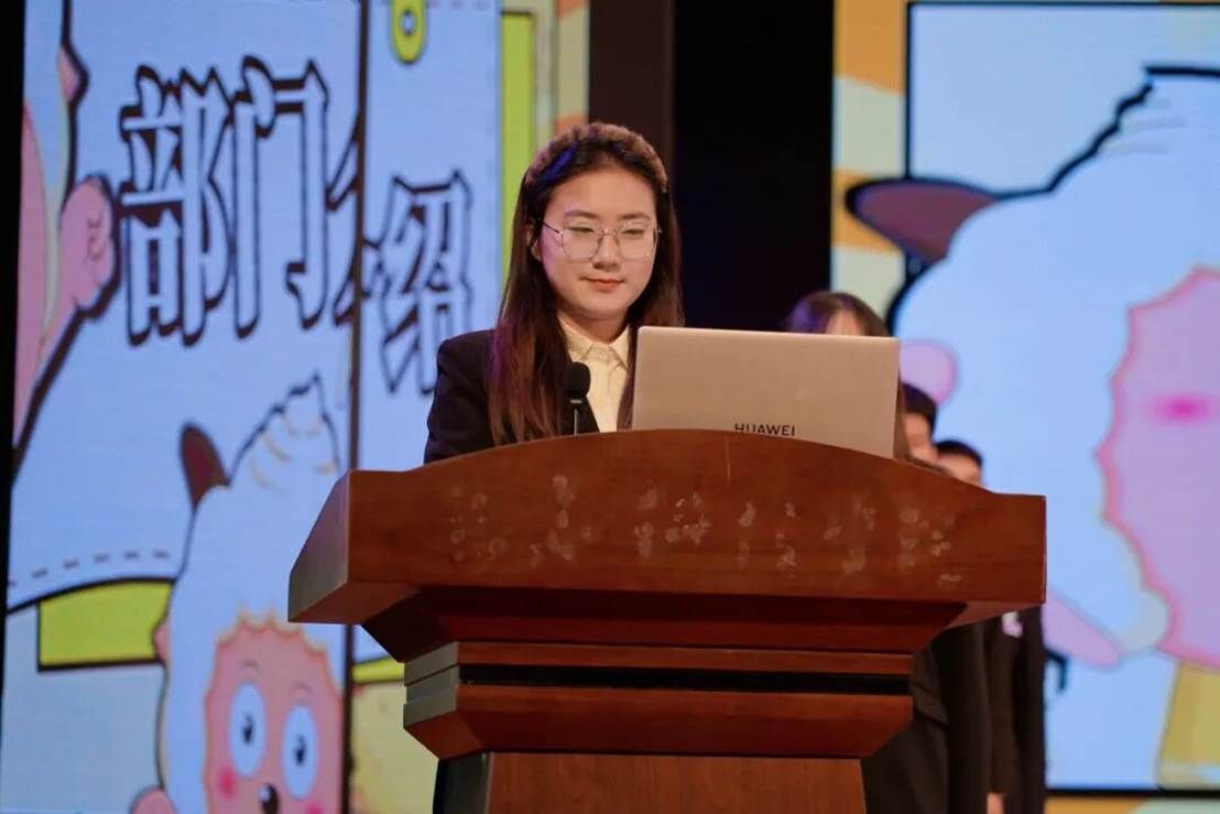 部门介绍环节尾声,学生会主席团成员刘瀛瀛上台作总结发言。她鼓励在场同学,希望大家通过此前的介绍能切实了解团学组织的架构与各部门工作,后续结合自身兴趣和特长慎重选择适配的部门;同时提到,团学组织是服务校园、连接师生的重要纽带,更是同学们锤炼能力、积累经验的实践平台,期待大家能在这里找准方向、发挥所长,与团学组织共同成长进步,为学院校园文化建设注入更多青春活力。