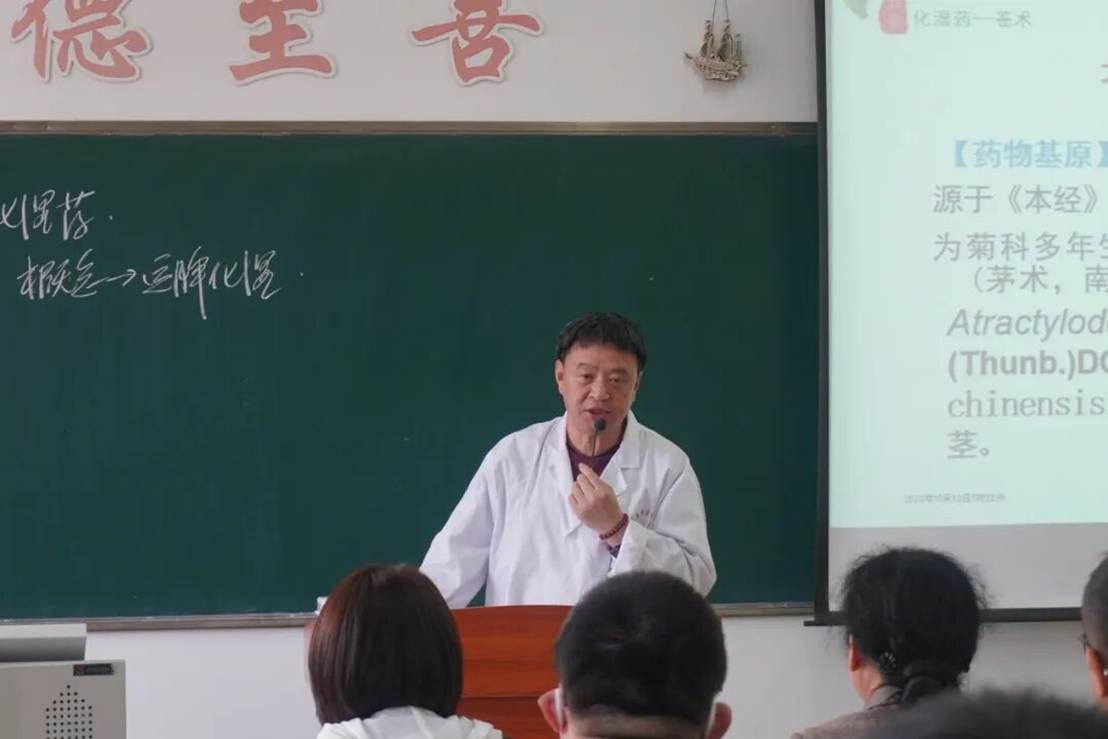 活动开始,张凤瑞教授以《中药学》课程中 “化湿药” 为授课核心,重点聚焦苍术、厚朴两味代表性药物,为全体教师呈现了一堂生动鲜活、兼具专业性与思政内涵的示范课程。课堂上,他不仅以中药药性理论为基础,系统讲解化湿药的性能特点、配伍原则及临床应用要点。通过结合苍术“燥湿健脾、祛风散寒”与厚朴“燥湿消痰、下气除满”的核心功效,让中药理论与临床实践和考研考证关键知识紧密衔接。同时,他将中医药文化传承、爱国自强等思政元素有机融入教学环节,整堂课节奏紧凑、互动自然,张老师风趣的讲解与精准的点拨让课堂氛围活跃高效,他还不时抛出“化湿药如何适配不同药方”“厚朴在行气方面的应用”等教学疑问,引人思考,全体听课教师专注记录、认真思辨,在观摩中收获了具体可借鉴的教学方法与思路,受益匪浅。