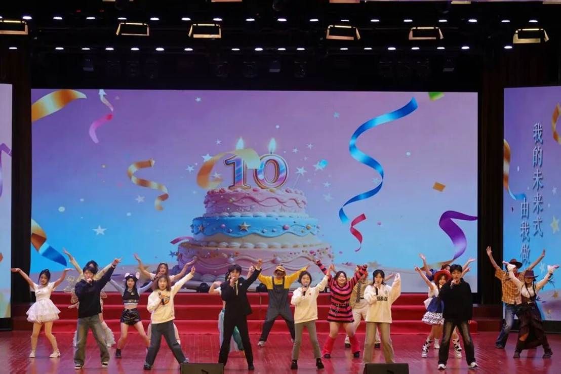 开场舞蹈《Diamond》惊艳亮相,动感的旋律铿锵奏响,飒爽的舞步利落跃动,视听交织碰撞间,瞬间点燃庆典的热烈氛围。舞台之上,医药学子们用灵动的身姿诠释昂扬向上的青春风采,以饱满的热情传递踔厉奋发的奋进力量,为这场跨越十载的学院华诞,奏响活力四射的璀璨序章。