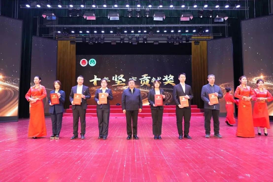 长春科技学院副校长张代治登台宣读《关于表彰“十年坚守贡献奖”及“初心归航奉献奖”的决定》。医药学院十载发展硕果累累,离不开全体教职工的同心聚力与无私奉献。为表彰伴随学院成长的坚守者,以及怀揣母校情怀返校、留校任教的优秀教师,特授予相关人员“十年坚守贡献奖”与“初心归航奉献奖”。他寄语全体获奖者珍惜荣誉、再创佳绩,号召全院师生以先进为标杆,传承“大医精诚”精神,为学院高质量发展与医药事业进步贡献力量。