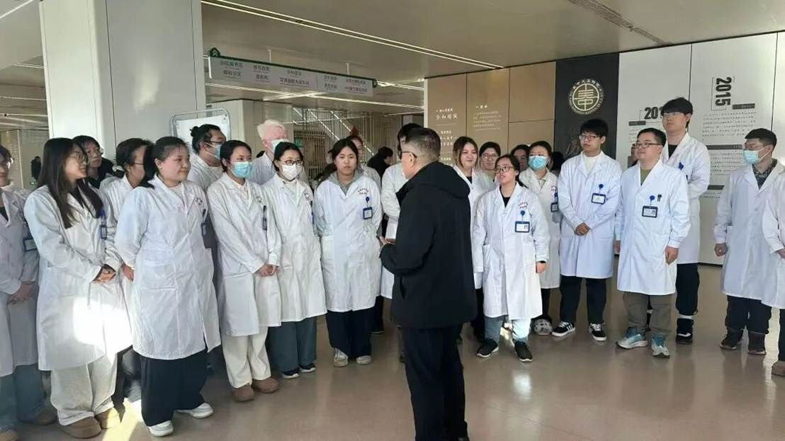 2021级中医学专业在长春中医药大学第三附属医院毕业实习的全体学生身穿白大衣、佩戴着实习单位的胸牌齐聚医院二楼正厅,由王德友主任进一步讲授本科毕业实习的重要性,叮嘱大家一定要珍惜宝贵的实习机会,多学、多看、多问,并一再督促学生要认真写好毕业实习手册,将真正学到的知识体现在具体病历上。接着长春中医药大学第三附属医院实习科张卓科长对前期的具体实习情况进行了总结,并对今后的实习工作提出了更加具体的要求。