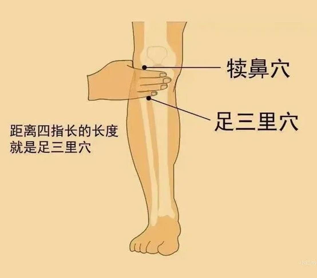足三里穴:定位:膝盖外侧下方凹陷处,向下约3寸,胫骨外侧一横指处,按摩方法:用拇指指腹按揉,力度以酸胀感为宜,每次100次/侧,每天2次,功效:健脾和胃、促进消化,增强代谢,减少脂肪堆积。