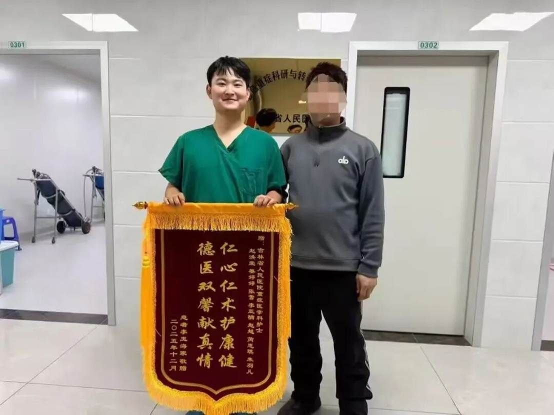 在吉林省人民医院ICU这个充满挑战的战场上,他用实际行动践行着 “以患者为中心” 的护理理念,让青春力量在守护生命的一线闪光。锦旗不仅是患者家属的感谢,更是对我院护理教育成果的肯定。未来,我们期待更多像朱羽凡一样的护理学子,在临床实践中不断成长,用专业和爱心为患者筑起坚实的健康防线。