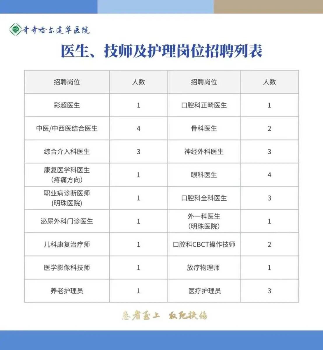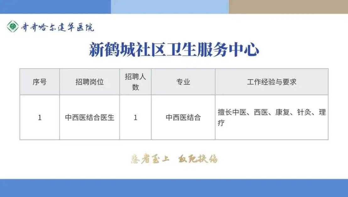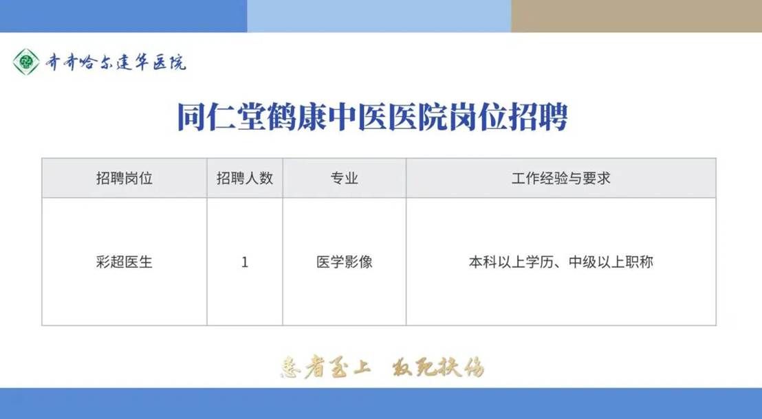 通信地址:齐齐哈尔市建华区双华路49号齐齐哈尔建华医院北院4号楼1楼人力资源部。