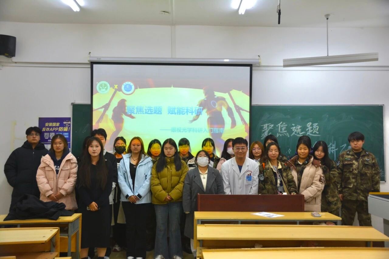 为破解眼视光学专业学生科研入门阶段的“选题难”困境,搭建同辈科研经验交流桥梁,11月10日16:40——17:40,由我院易视界协会承办的“聚焦选题,赋能科研”眼视光学专业学长经验分享讲座在第四教学楼311顺利开展。我院眼视光学专业全体学生积极参与,现场学习氛围浓厚。