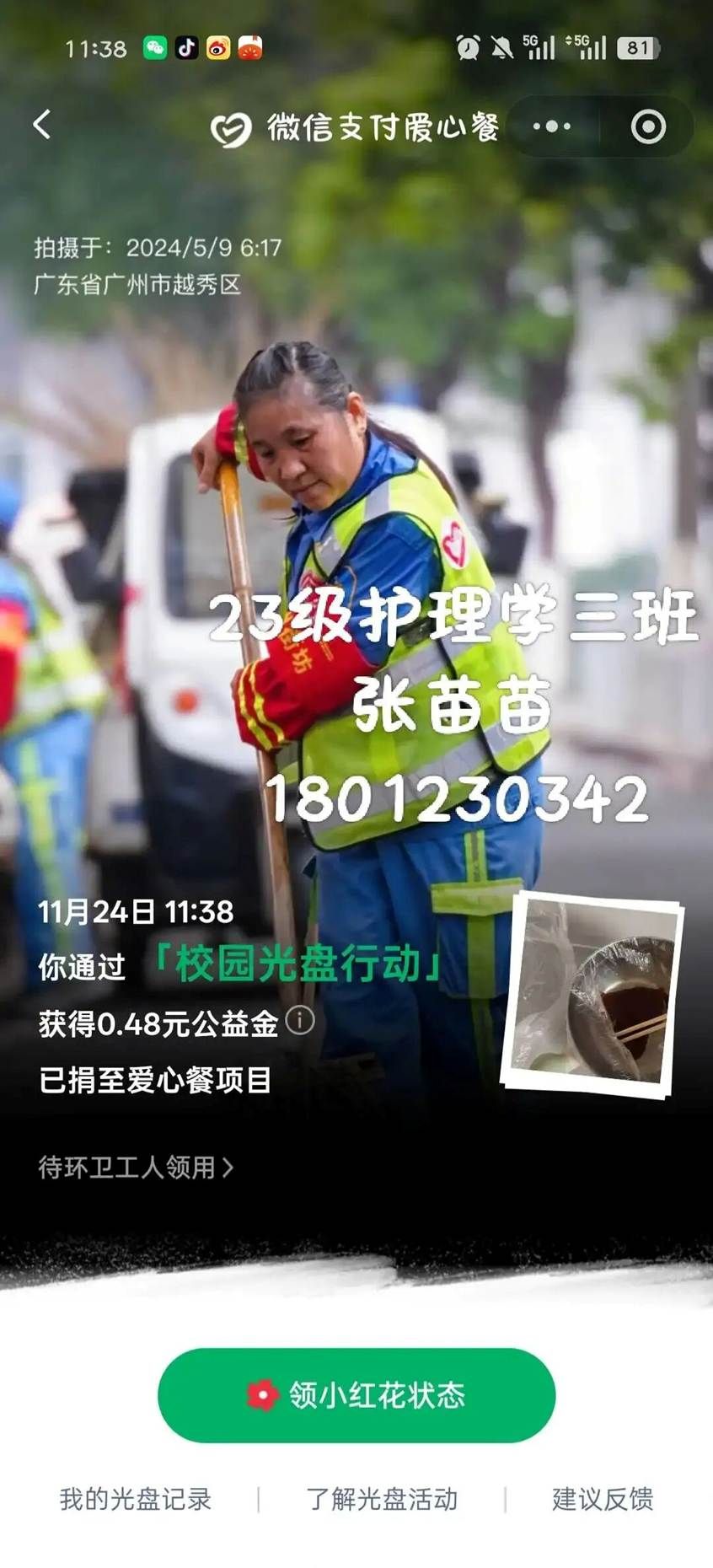 本次线上“光盘行动”打卡活动不仅让节约理念在校园落地生根,也让文明习惯融入日常。未来,我院心连心志愿者协会将持续发力,以更完善的机制、更丰富的形式,推动节约粮食成为常态化、长效化的行动,让勤俭节约的传统美德在新时代校园中绽放持久光芒!