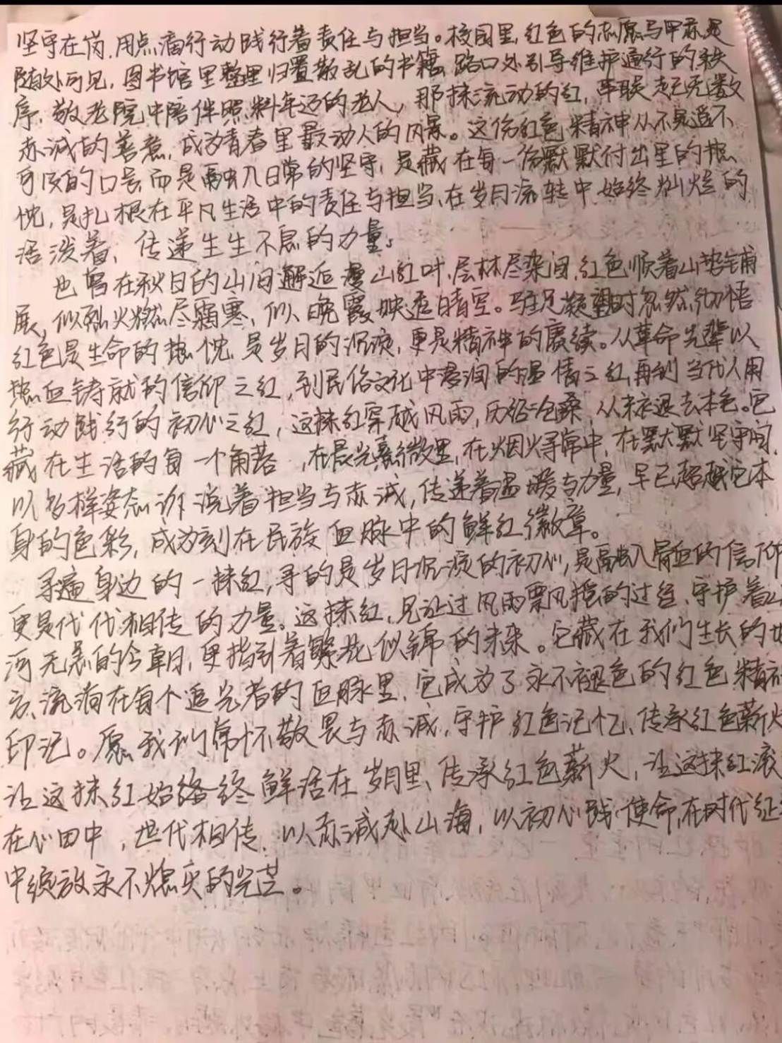 本次活动以“寻找身边的一抹红”为核心,挖掘生活中的“红色元素”,同学们通过线上征文活动的方式,积极寻找自己身边的红色印记,在感受校园文化的同时,助力青年学子在观察与创作中深化对红色文化的理解与认同。