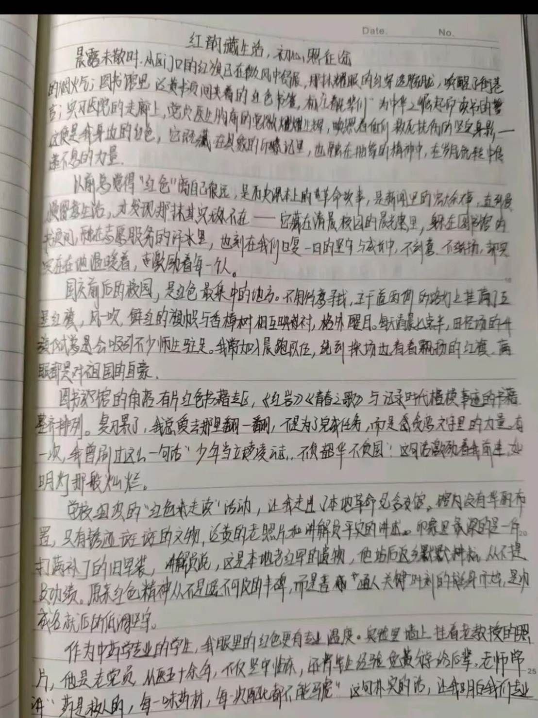 随着活动开始,同学们都积极参与,尽显青春热忱。他们将心底沉淀的红色记忆细细落笔,那些平日里未曾轻易言说的赤诚情愫,都化作了字里行间的滚烫力量。一篇篇心怀热爱的征文,像一束束穿越时光的星火,照亮了革命先辈的峥嵘岁月;这些红色印记在校园的沃土中扎根生长,让红色精神跨越时空、生生不息。