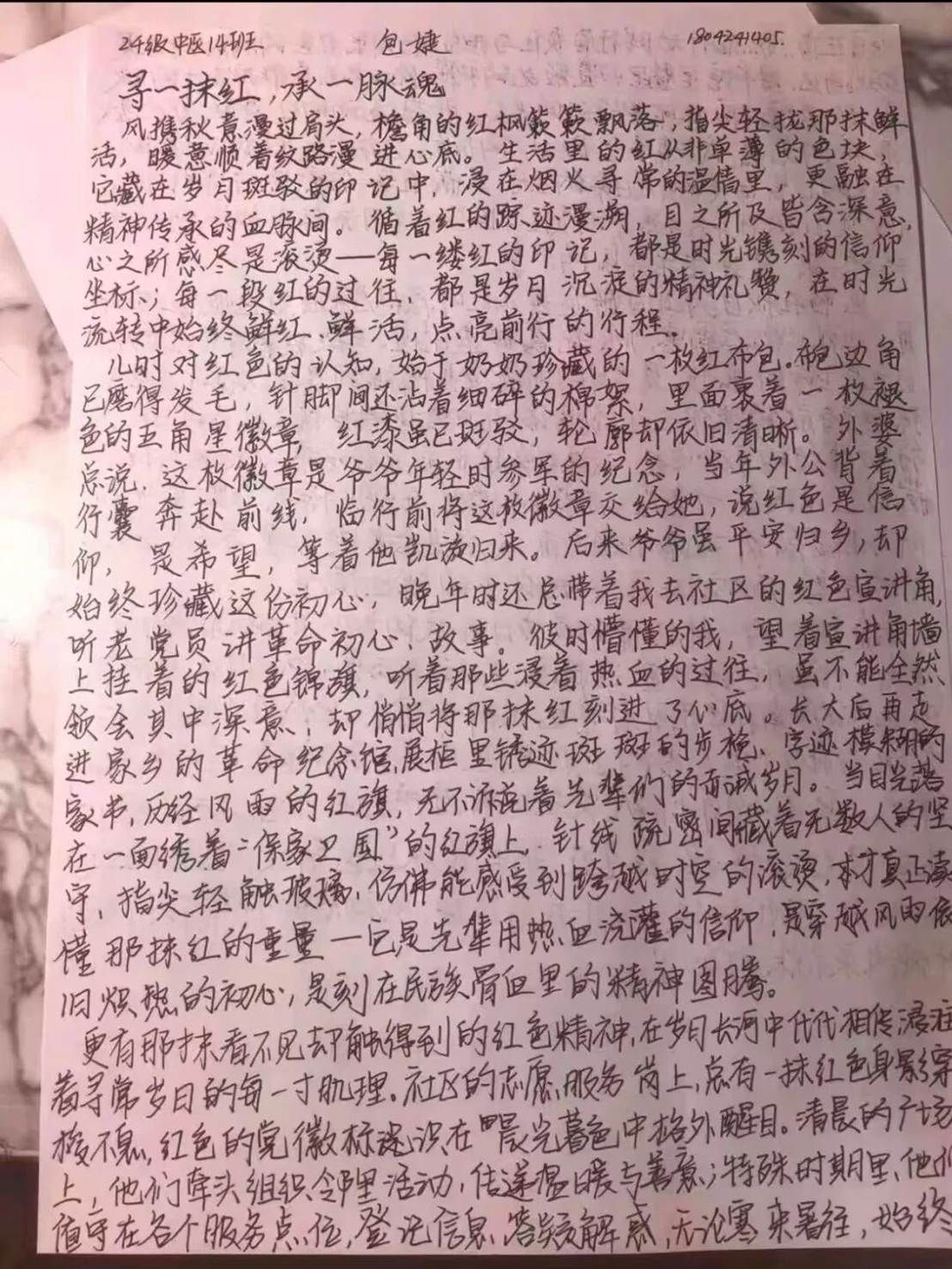 本次“寻找身边的一抹红”征文活动,是大学生发掘红色元素、抒发爱国热忱的优质载体。它既凝聚了青年学子的责任担当,让红色传统在新时代校园焕发出蓬勃生机与无限活力,更引导着大家以实际行动践行时代使命,争做有理想、敢担当、能吃苦、肯奋斗的青春榜样,为红色基因的传承与家国情怀的培育,奠定了坚实而牢固的精神基石。