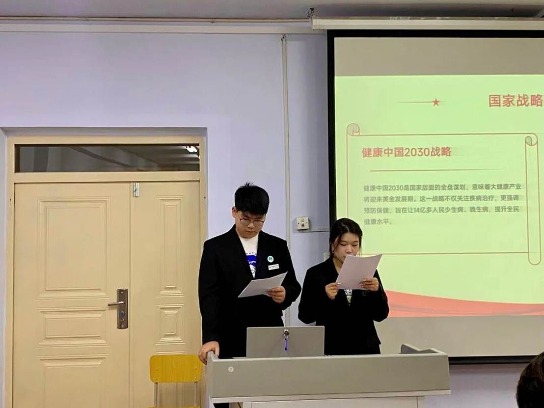 活动伊始,主讲人以“沉浸式导入”开启班会。首先播放8分钟微视频,内容聚焦“国家青年发展政策亮点”“各行业创新机遇”,重点嵌入医药产业现代化、中医药文化出海等专业相关案例,搭配数据图表直观呈现机遇;视频结束后,主讲人结合内容抛出核心问题“这些行业动态与我们的专业学习、未来规划有哪些关联?”引发同学们思考。