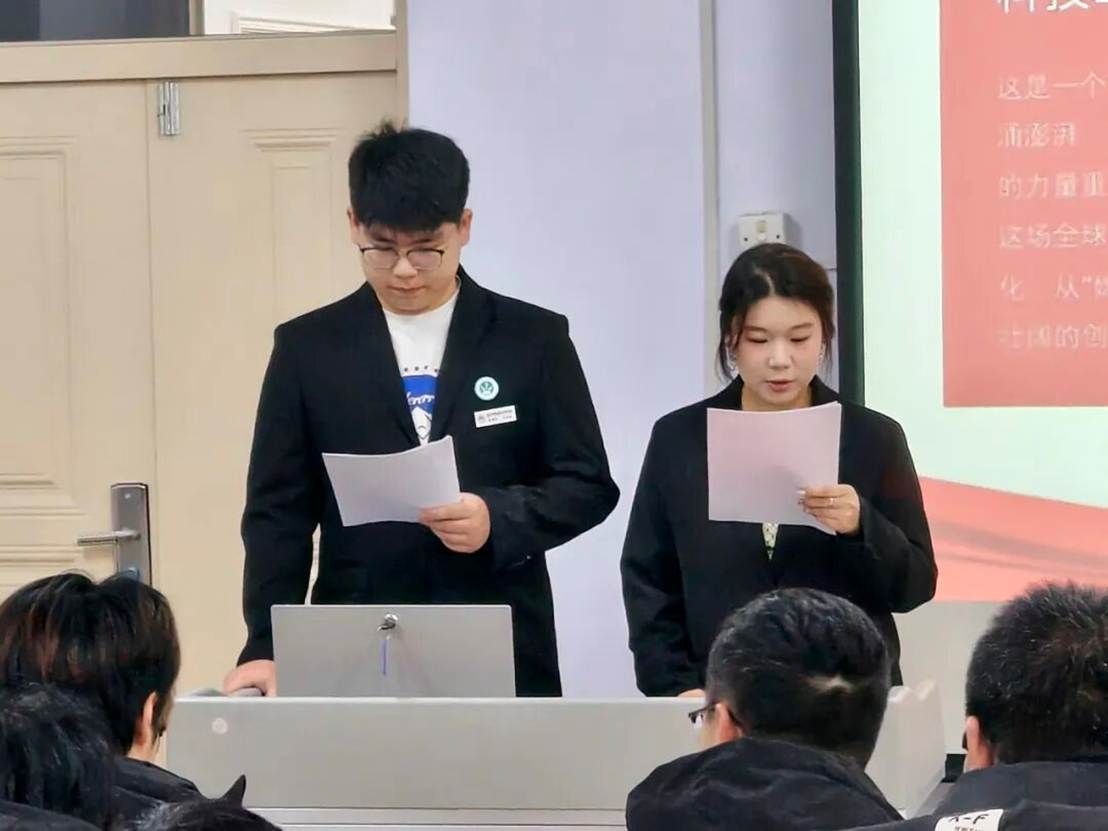 接近尾声时,主讲人先快速串联团课重点,把“洞察时代机遇”和“践行青年担当”的核心逻辑梳理清晰,提炼出“锚定政策方向、打磨自身本领、主动服务社会”三个行动要点,还举例说明:“日常多关注行业动态、积极参与校园志愿活动、认真钻研专业知识,都是把担当落到实处的做法”。紧接着,主讲人邀请同学们简单分享本次班会的思考,同学们争相分享自己的感悟,话语里满是真切的收获。最后,主讲人通过一个轻松的视频,为班会的核心环节平稳收尾。