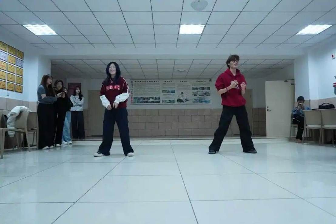 紧接着,持续随机播放舞蹈,女团舞,男团舞等多元音乐,无固定流程与强制要求。同学们根据音乐喜好随时加入舞池,跳累了便自行下场休息,或与同伴交流舞蹈感受,现场靠大家自发互动维持轻松氛围,有人领跳时其他人可自由跟跳。