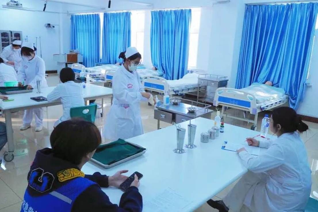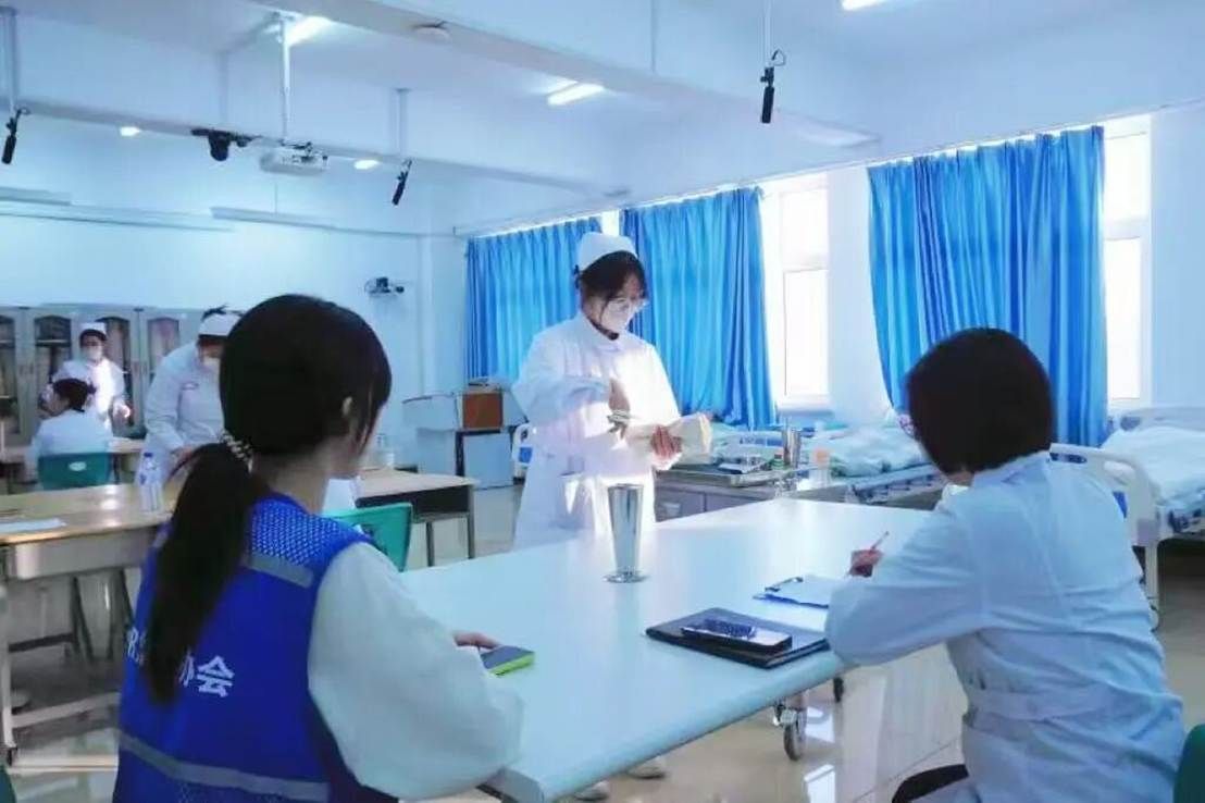 比赛现场,选手们身着规范着装,依次完成七步洗手法、无菌包使用、无菌溶液取用等实操项目。从洗手时的精准揉搓,到打开无菌包时的严格无菌观念,再到取用溶液时的规范操作,每一个细节都彰显着同学们对专业技能的敬畏与钻研。四位护理学专业评委老师李慧敏、孙长波、于雪微和崔颖全程细致观察、公正打分,从操作流程、无菌观念等维度进行综合考评,确保比赛的专业性与公平性。