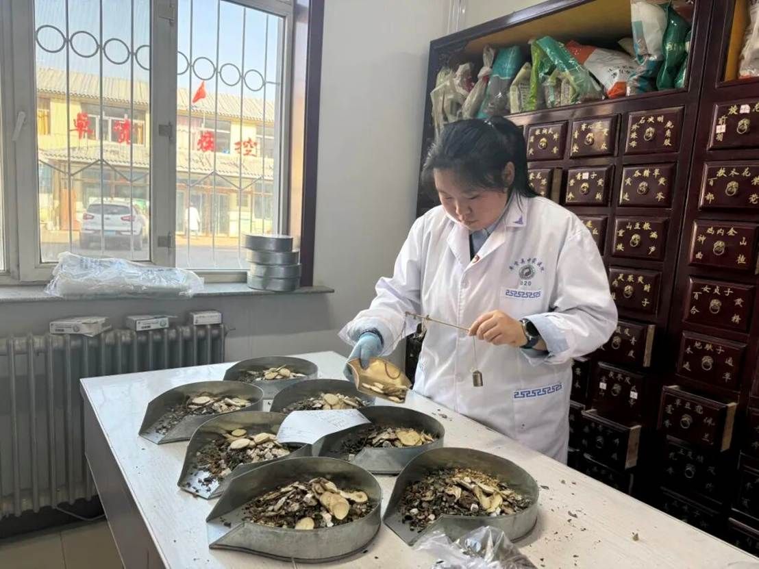 时光荏苒,在卓资县中蒙医院中药药房实习已近尾声。初入药房时,面对一排排整齐的药斗、百味各异的中药材,我曾陷入手足无措的困境。课堂上熟记的药名与眼前的饮片形态难以对应,相似的甘草与炙甘草、生地黄与熟地黄常常让我混淆,更别提精准把握每味药的炮制规格与功效差异。带教老师看出了我的窘迫,耐心地带我逐一认识药斗中的药材,教我用“眼观色泽、手摸质地、鼻闻气味”的方法辨识饮片——当归的油润香气、黄芪的绵密质地、柴胡的微苦回甘,都成为我记忆药材的独特印记。带教老师反复强调:“中药调剂,‘准’是底线,认药不准,后续一切都无从谈起。”在带教老师的指导下,我每天提前到岗整理药斗、背诵药材性状,渐渐地,百药柜中的每一味药材都成了我的“老熟人”,从认药到找药的速度越来越快,也为后续的调配工作打下了坚实基础。
