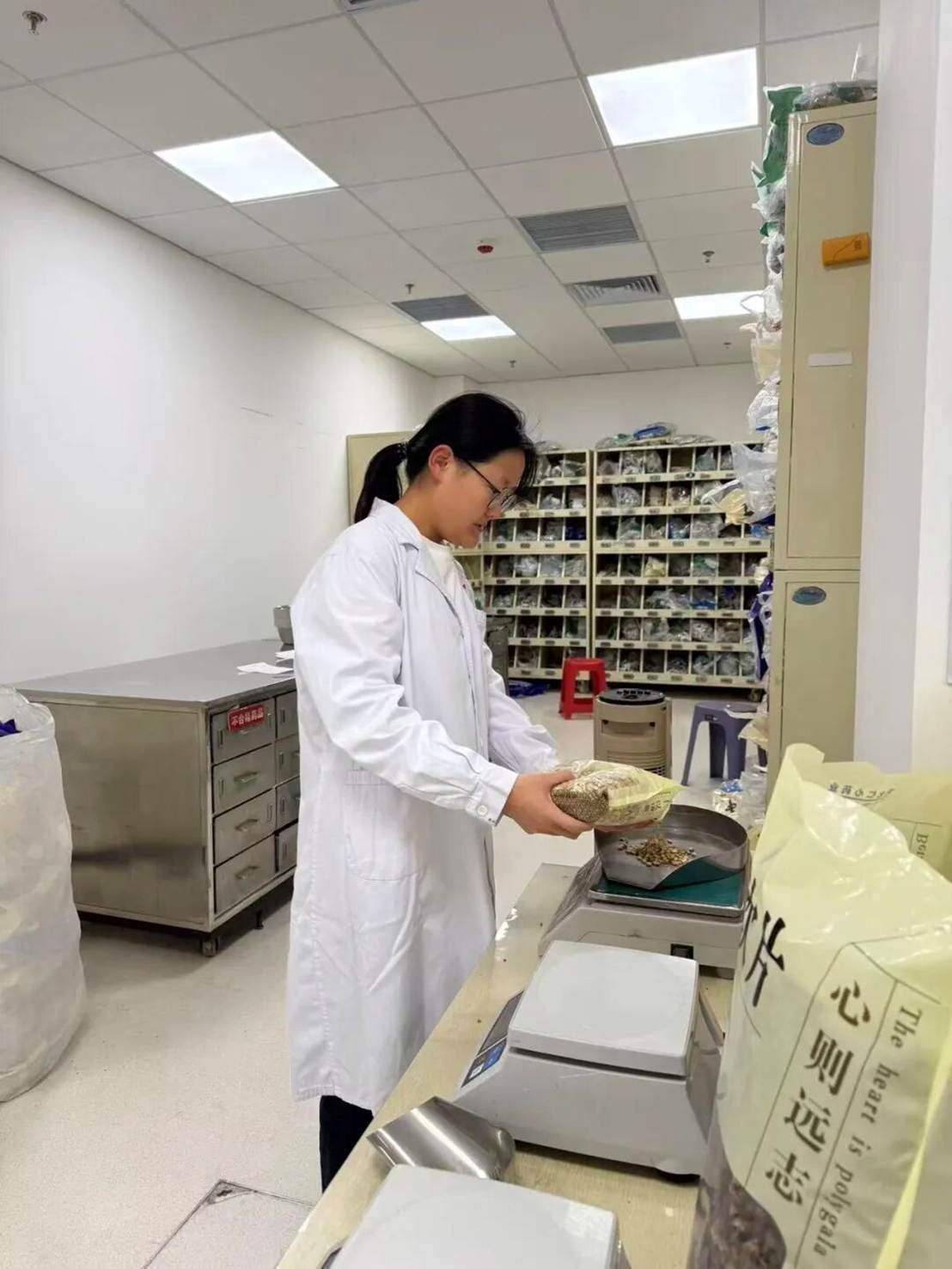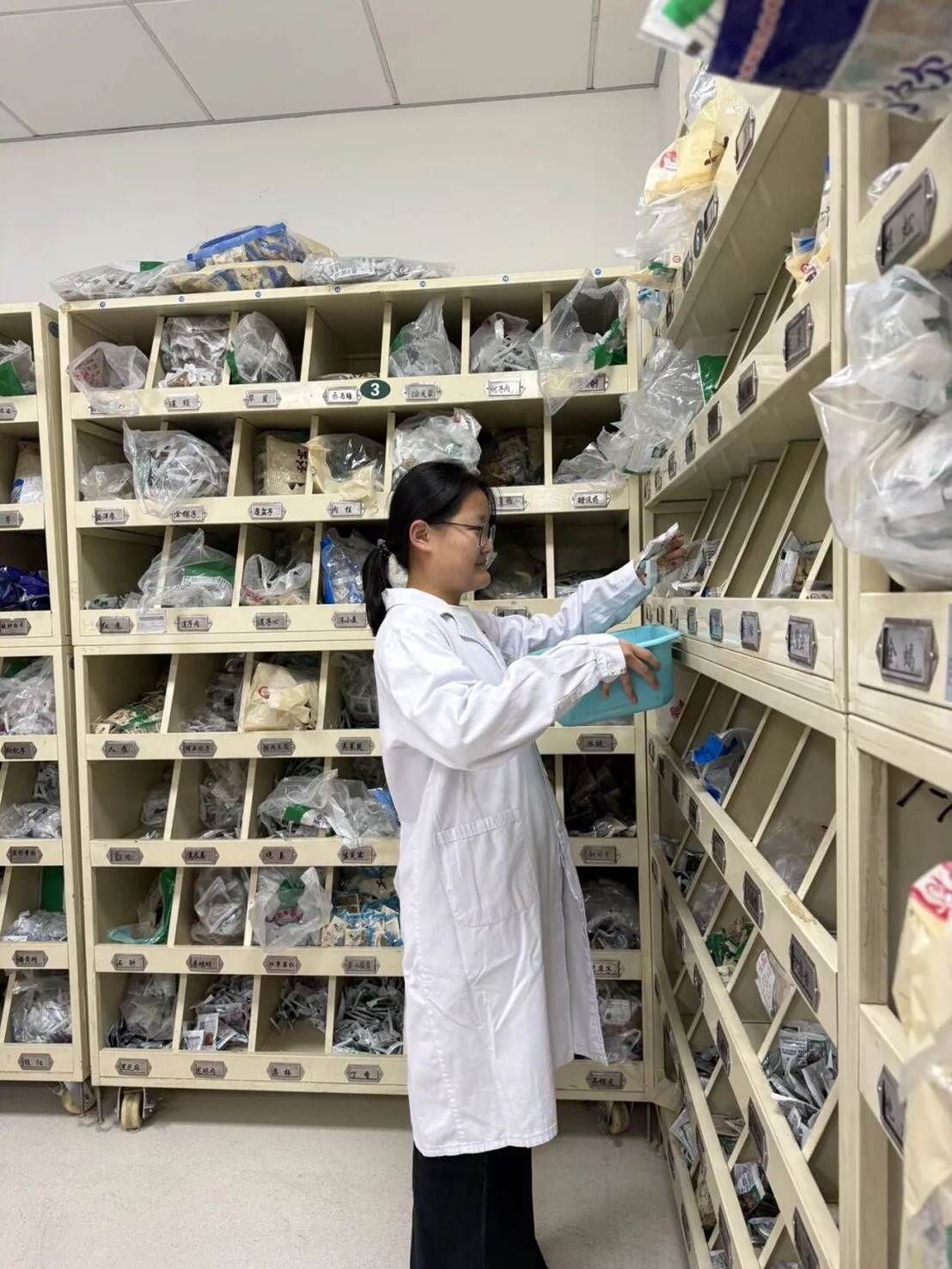 初入中药房时,我对这里的一切都充满了陌生感。满墙的药斗、琳琅满目的中药饮片,还有药师们熟练的操作,都让我意识到,课本之外的世界远比想象中更具体、更严谨。因为还没有系统学习专业知识,我最初的工作更多是协助性质的:为患者抓药配药、进行中药饮片辨识与称量、辅助完成处方审核与信息录入,以及中药饮片及中成药的整理养护和中药煎药室的配合工作。每一项看似简单的任务,都藏着不容小觑的学问。