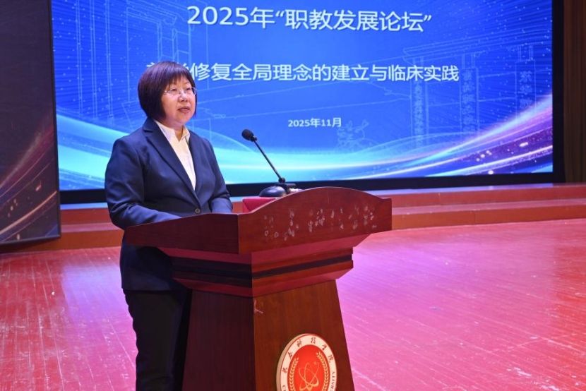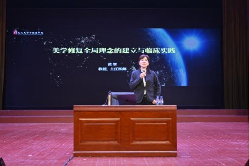 作为论坛核心环节,黄翠教授带来主题讲座。她围绕口腔美学修复的“意义、内涵、临床实践”三大维度,结合丰富临床案例,系统阐释了口腔美学修复的全局理念,拆解了从方案规划到实操落地的关键步骤。针对职业教育特点,黄教授特别强调“技术规范与审美素养协同提升”,为师生构建起“理论-实践-审美”一体化学习框架,其见解深刻且贴合职教需求,赢得现场阵阵掌声。